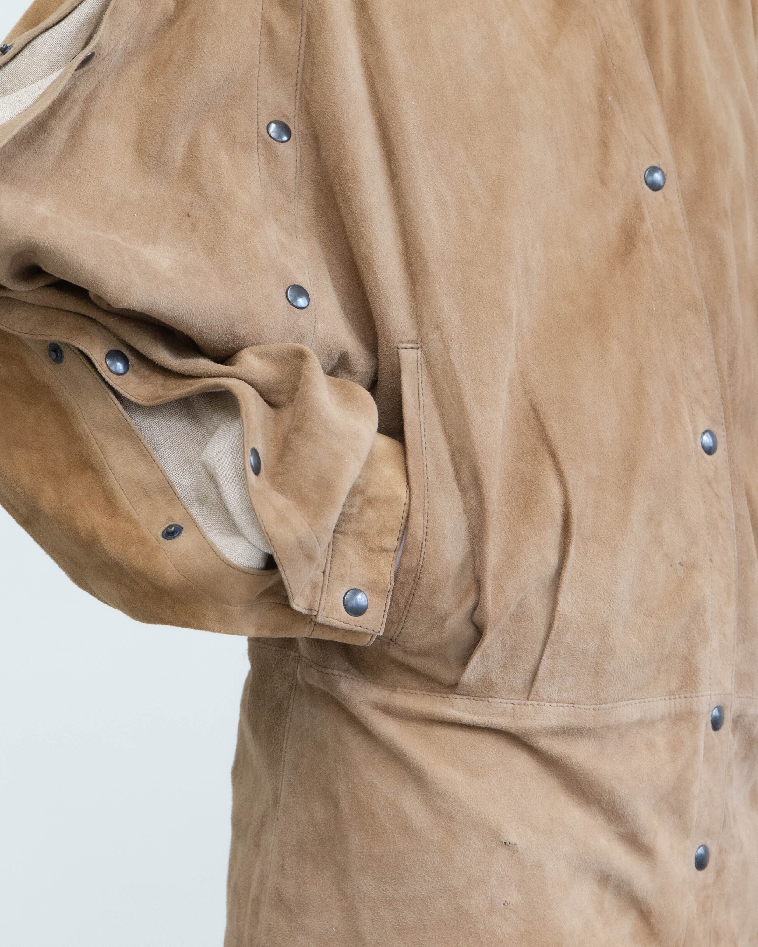 前後の裾にベルトループが4ヶ所付いていたような痕跡があります。添付写真をご参照ください。