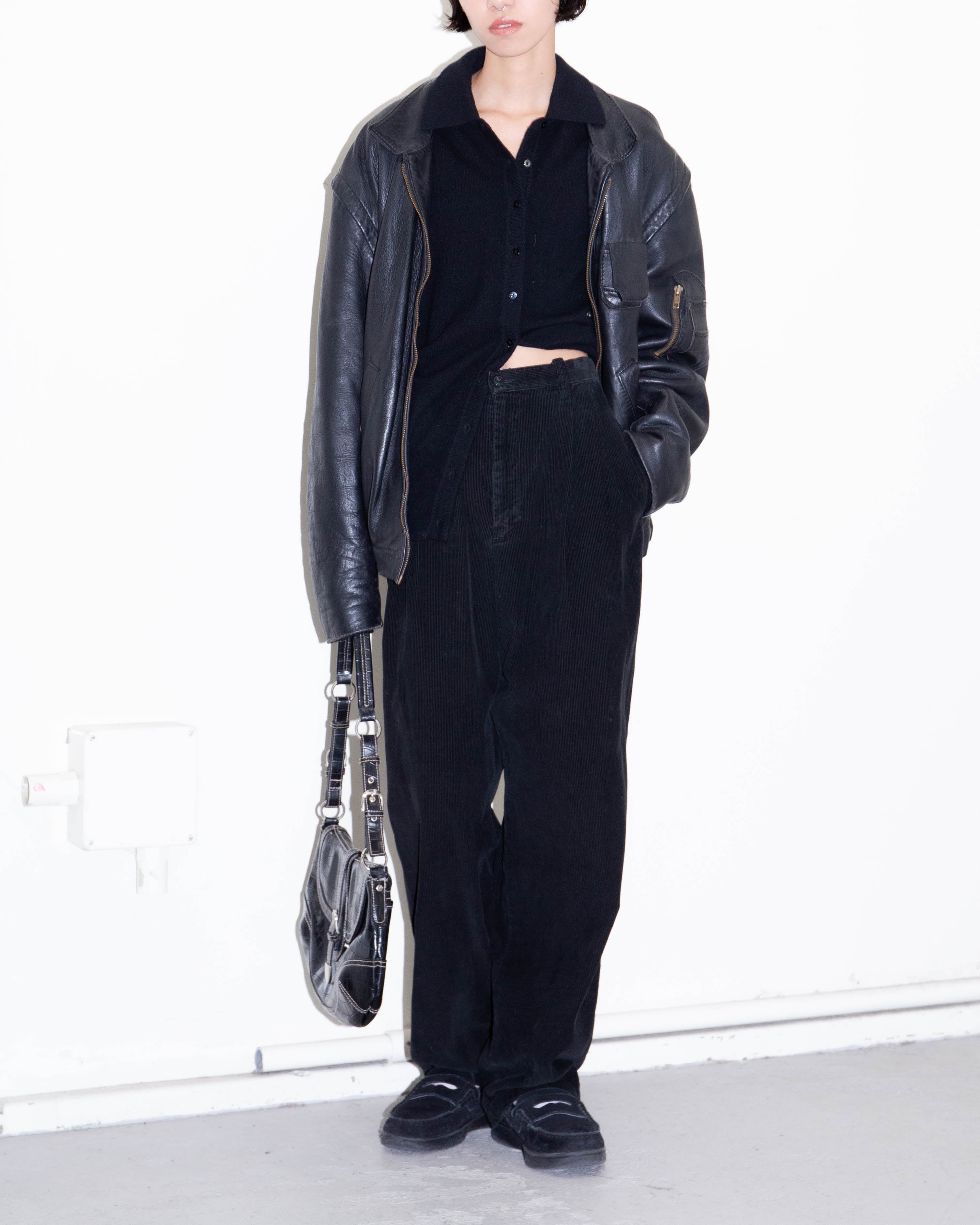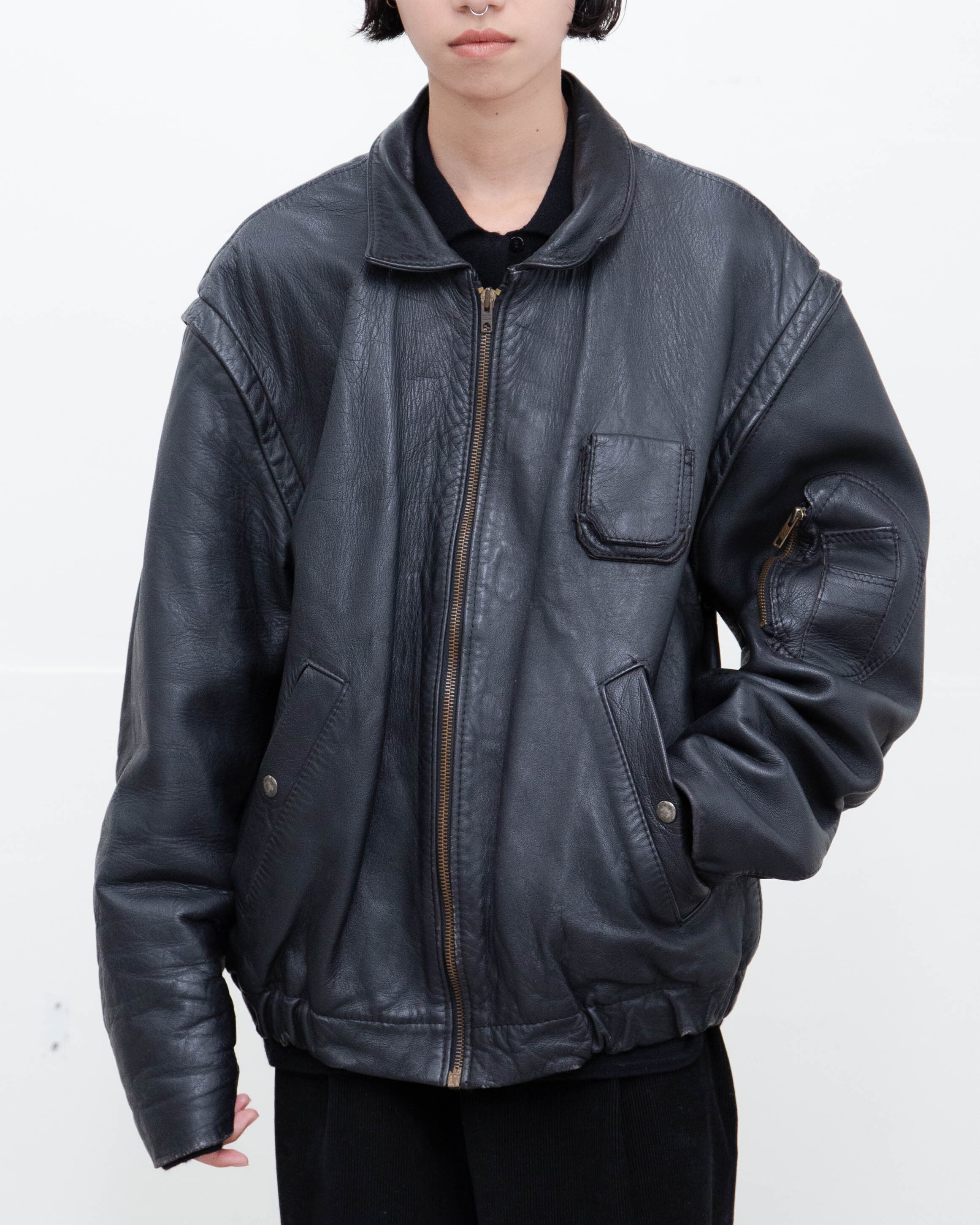 右袖上腕と両袖口、前身頃裾に擦れによるダメージがございます。添付写真をご参照ください。