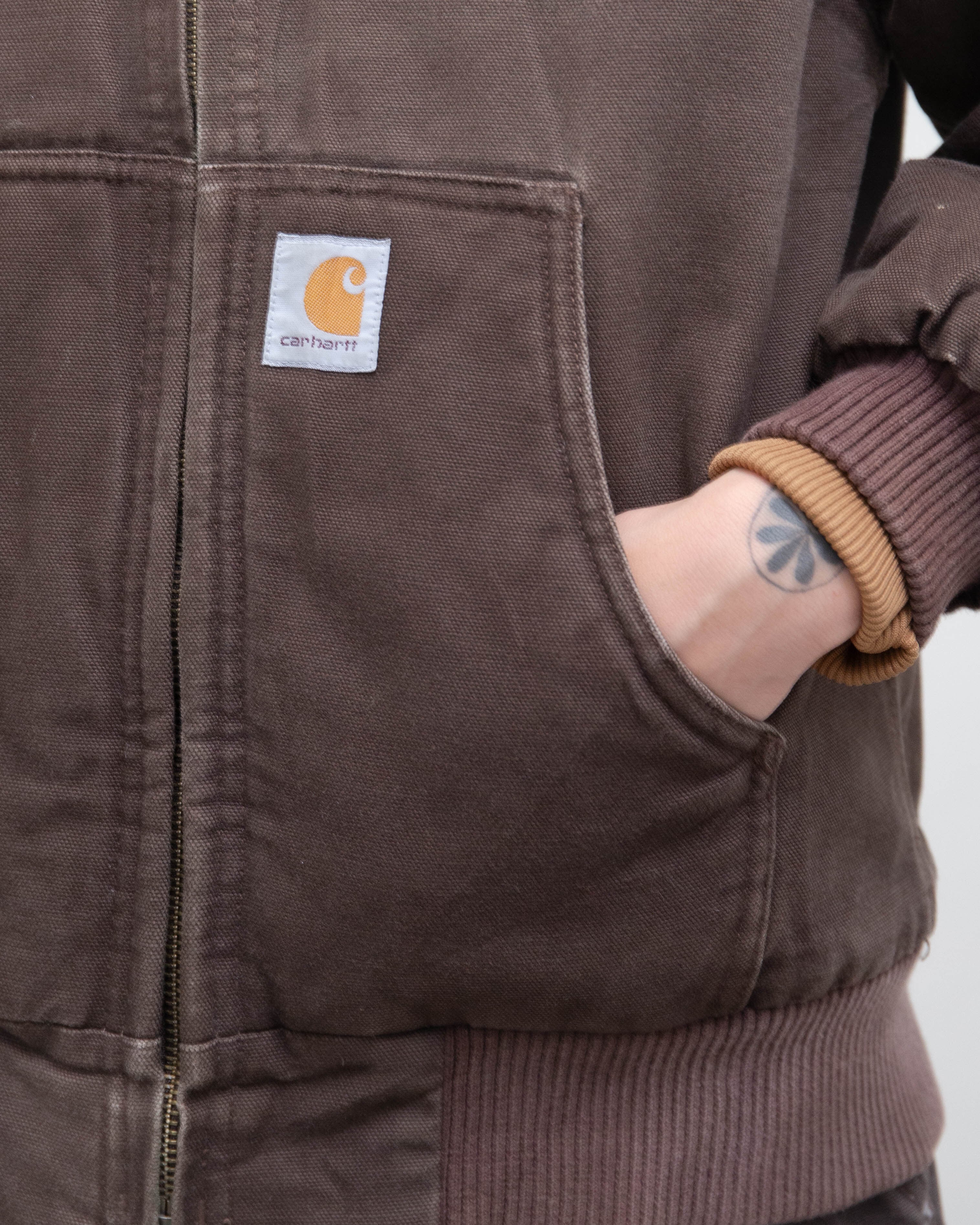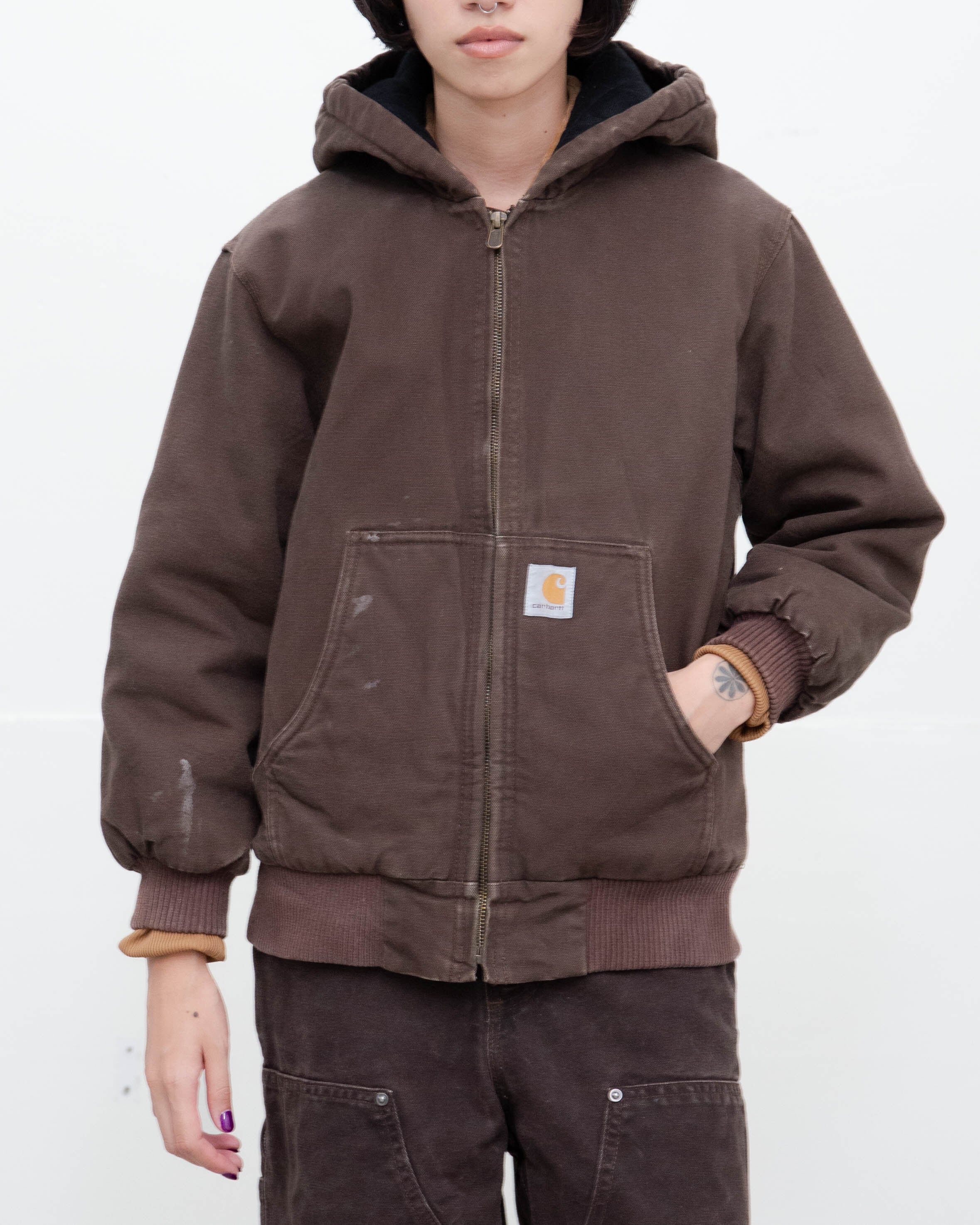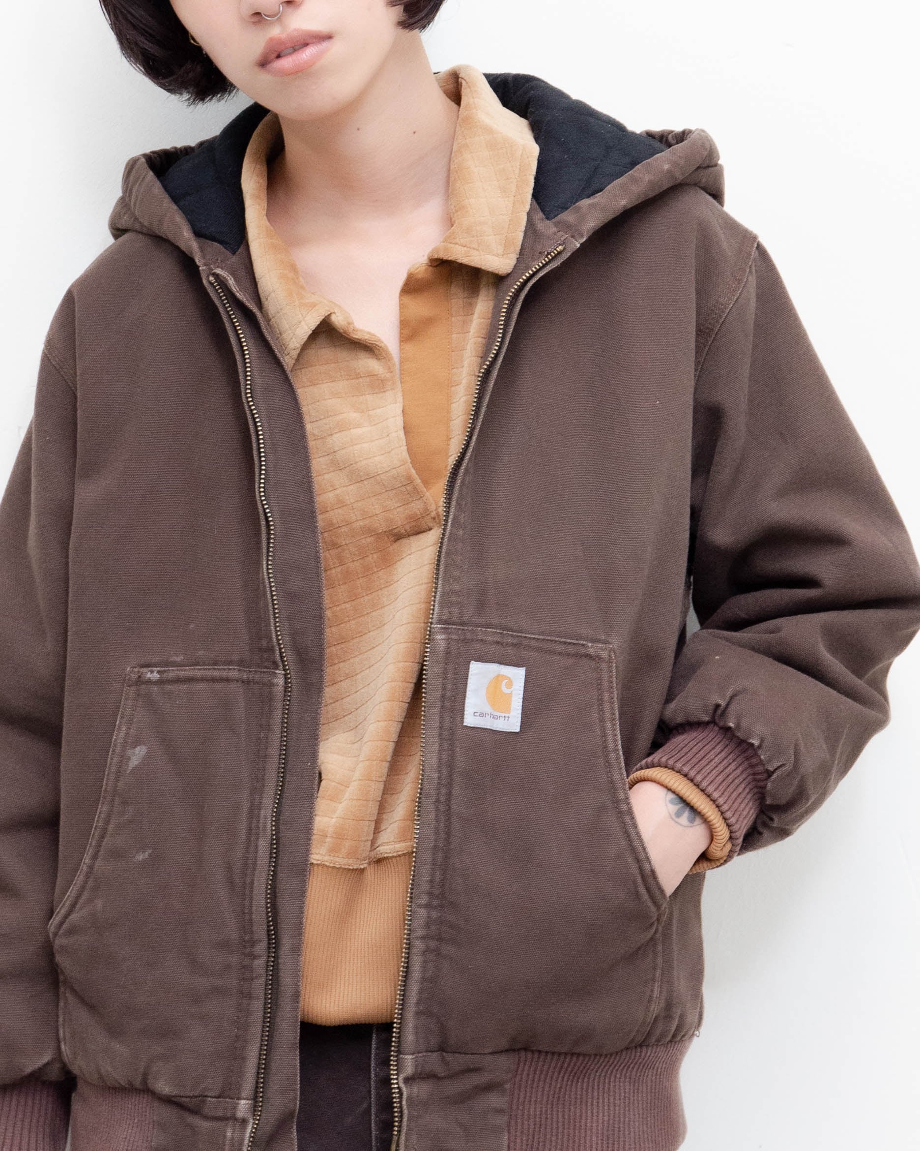 前身頃右腹部と右袖口付近にシミがございます。添付写真をご参照ください。