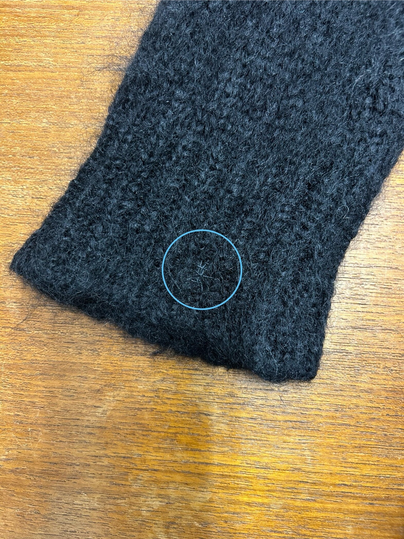 左袖口にリペア跡がございます。添付写真をご参照下さい。