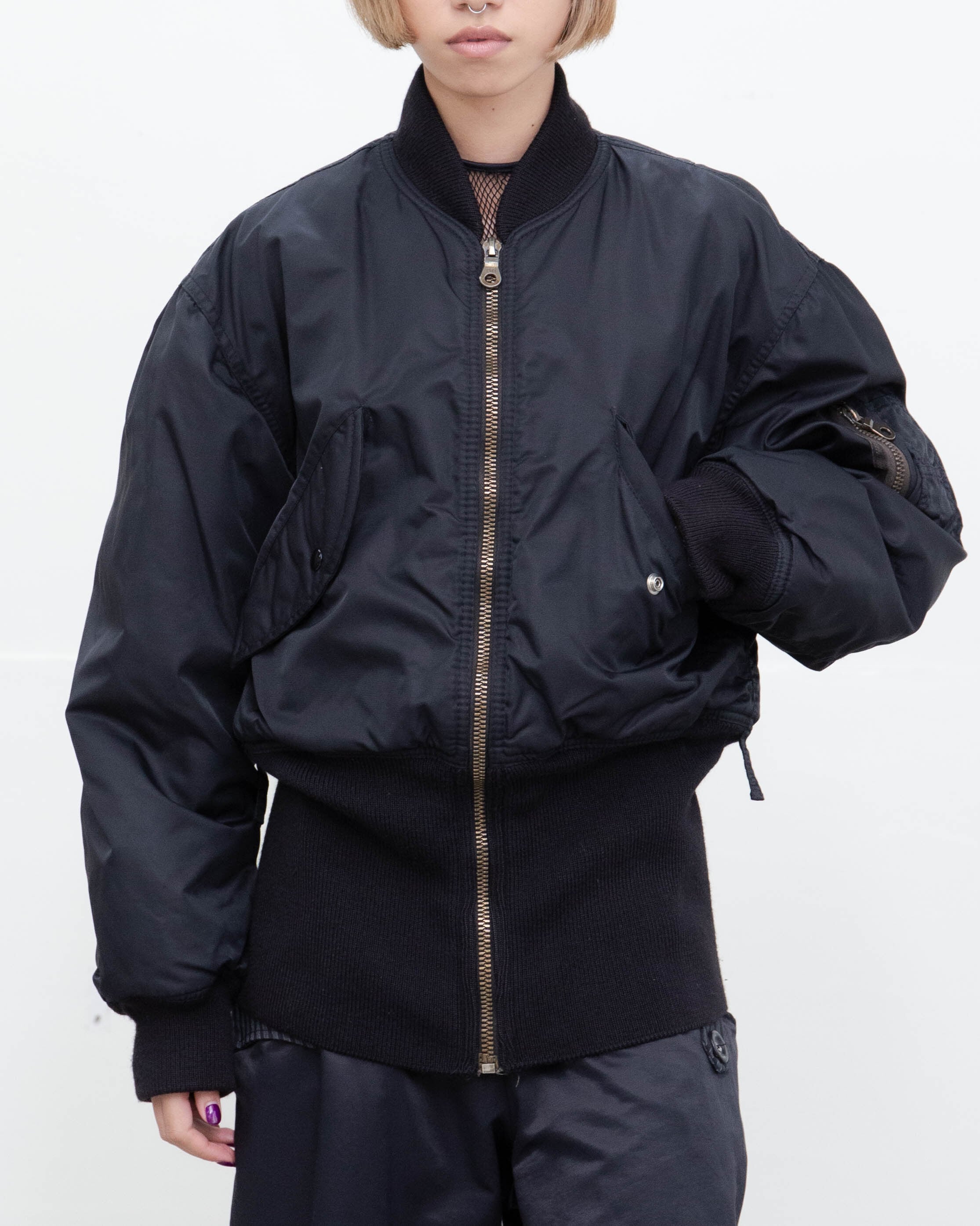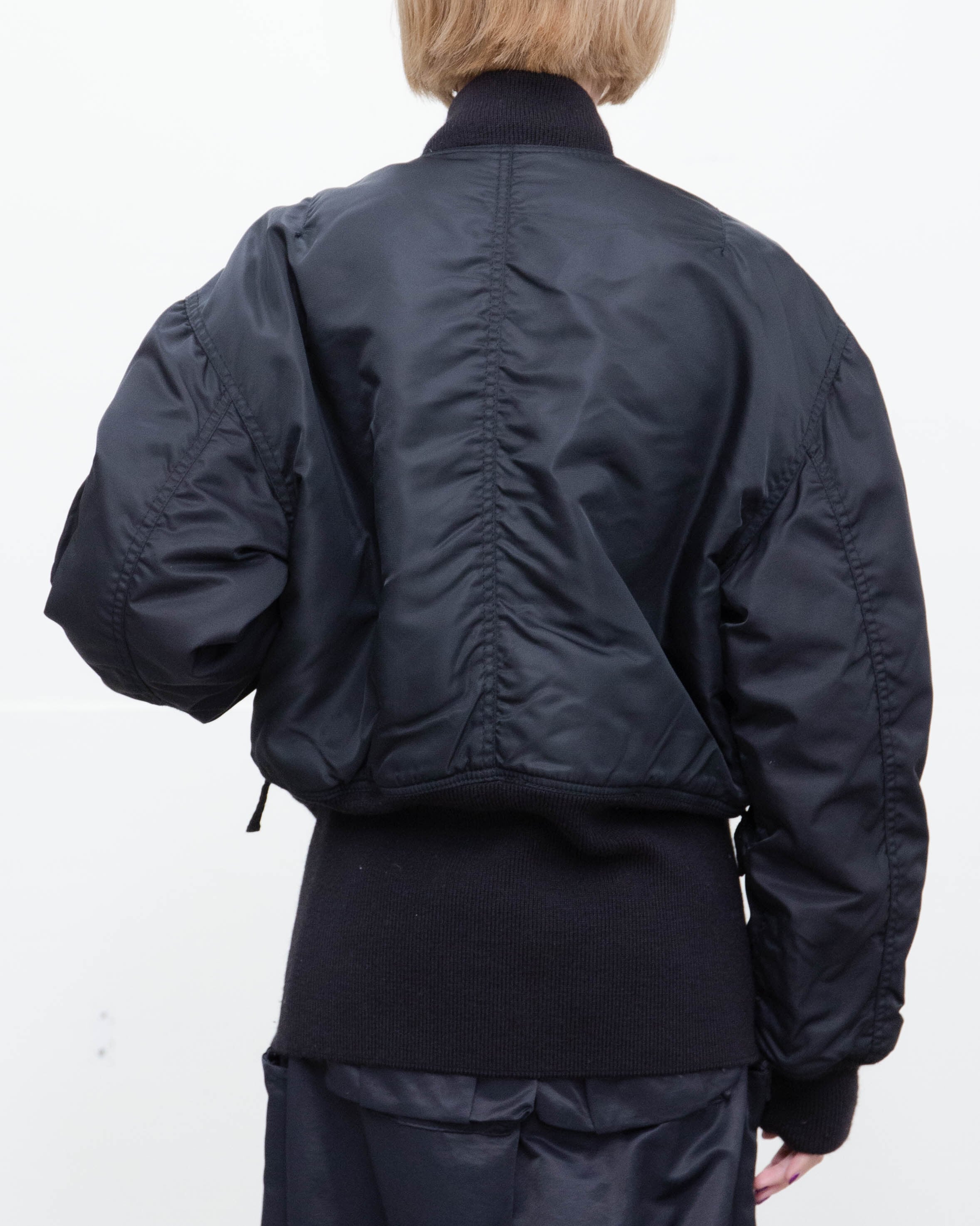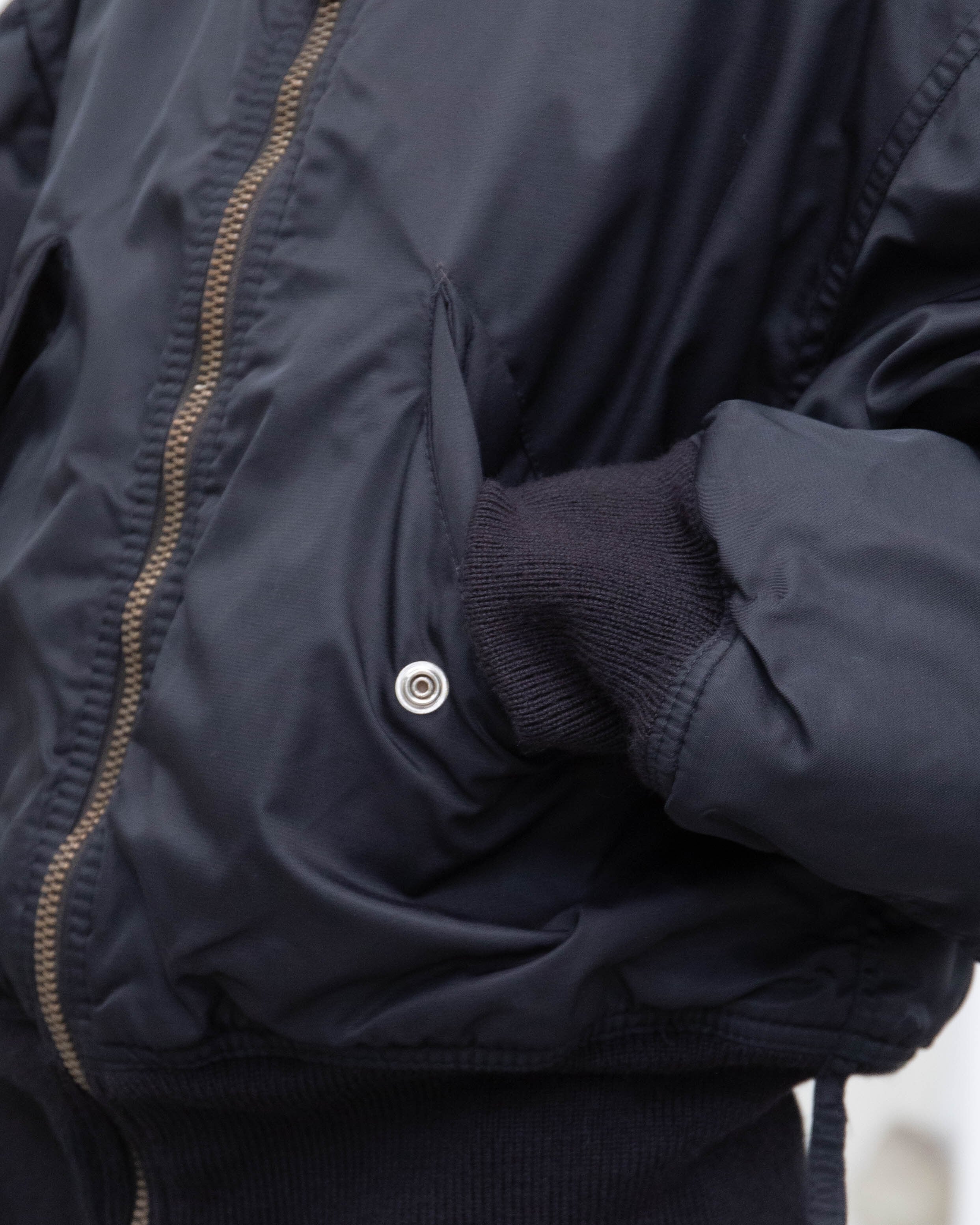 左袖下部に生地の引きつれがございます。添付写真をご参照ください。