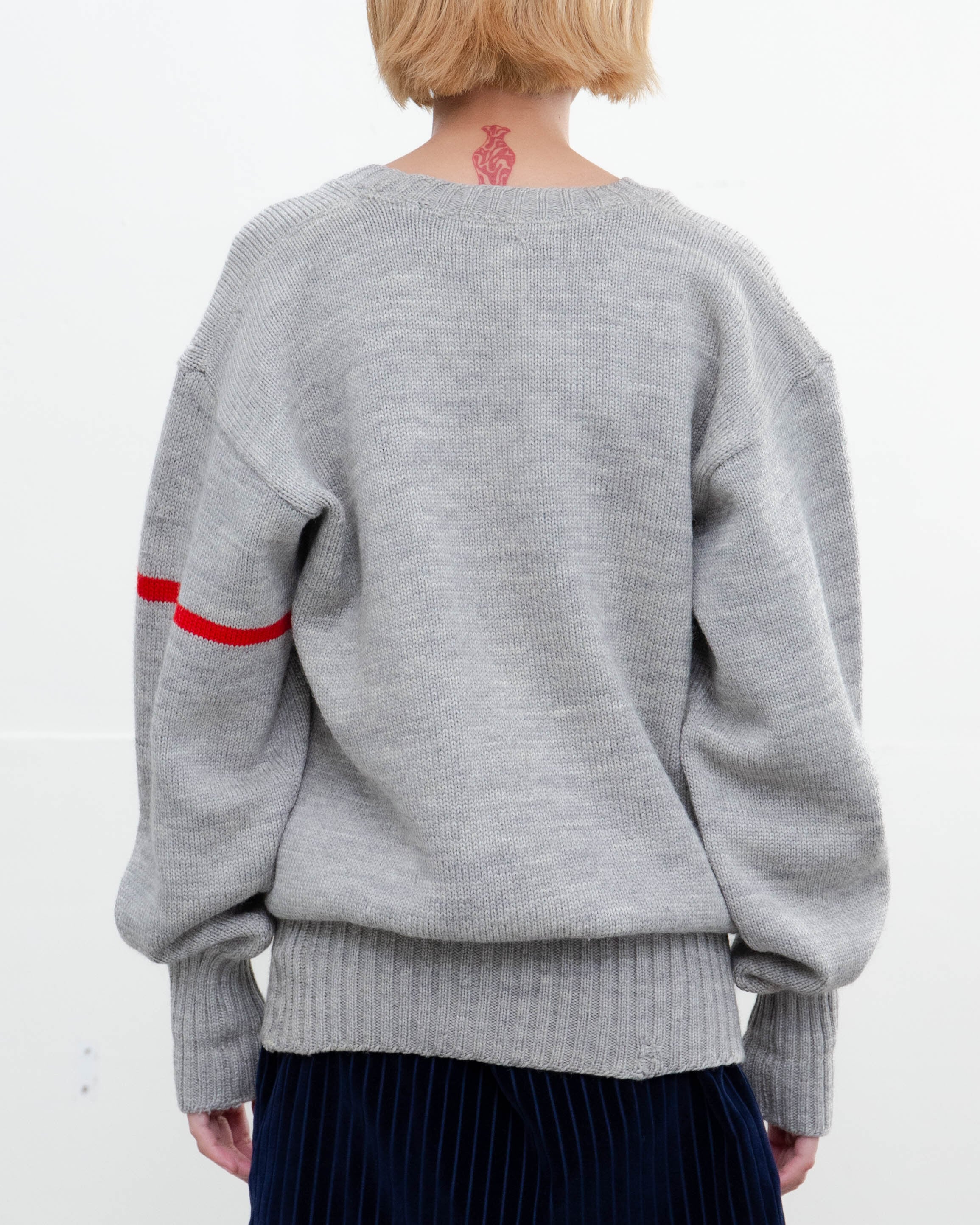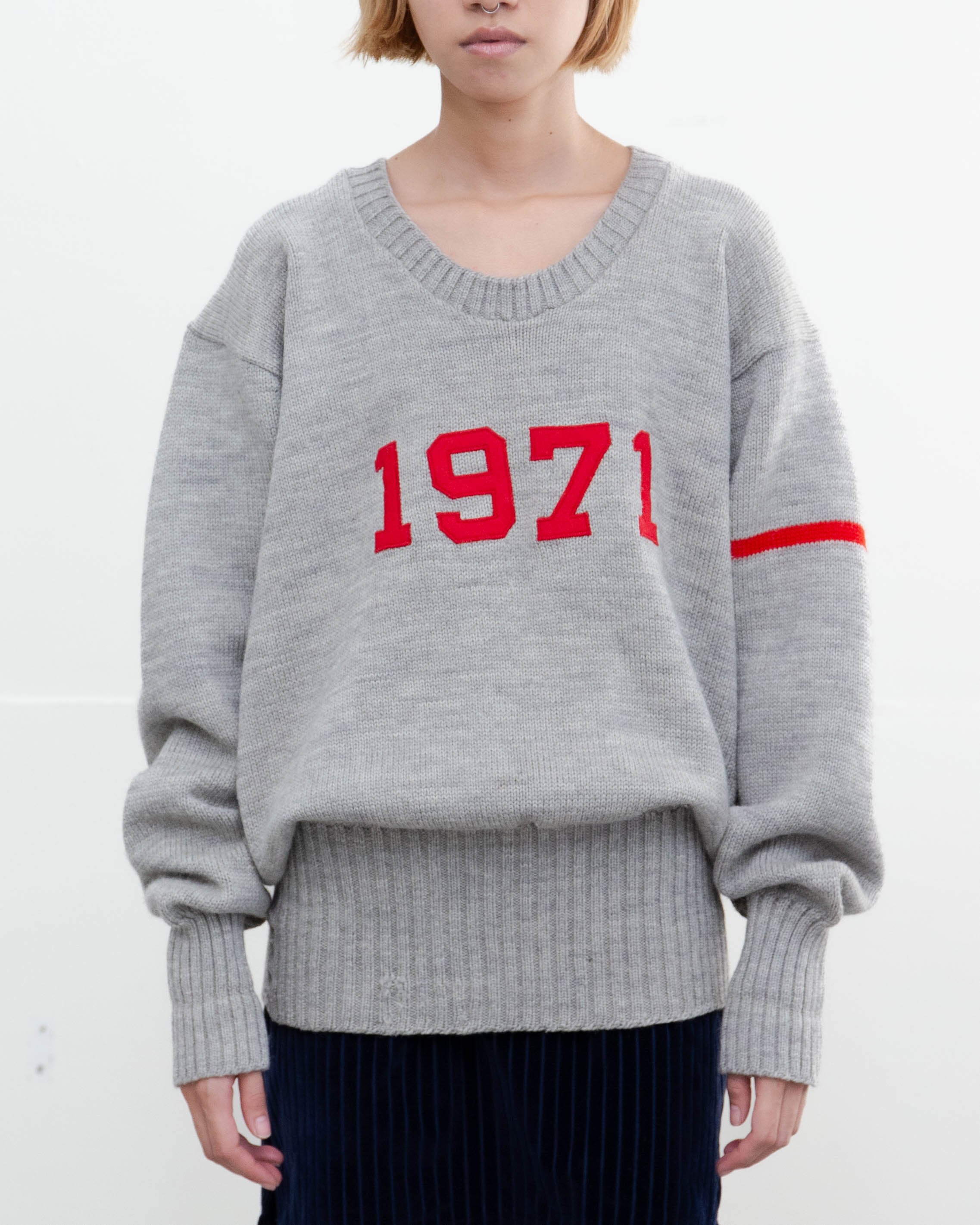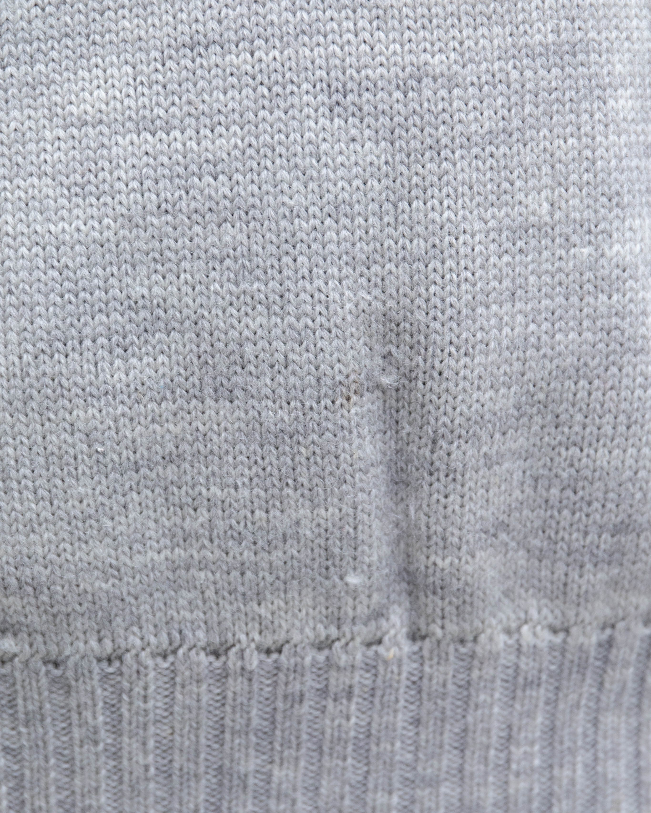 下腹部中央に薄シミ、両身頃リブ裾にリペア跡がございます。添付写真をご参照下さい。