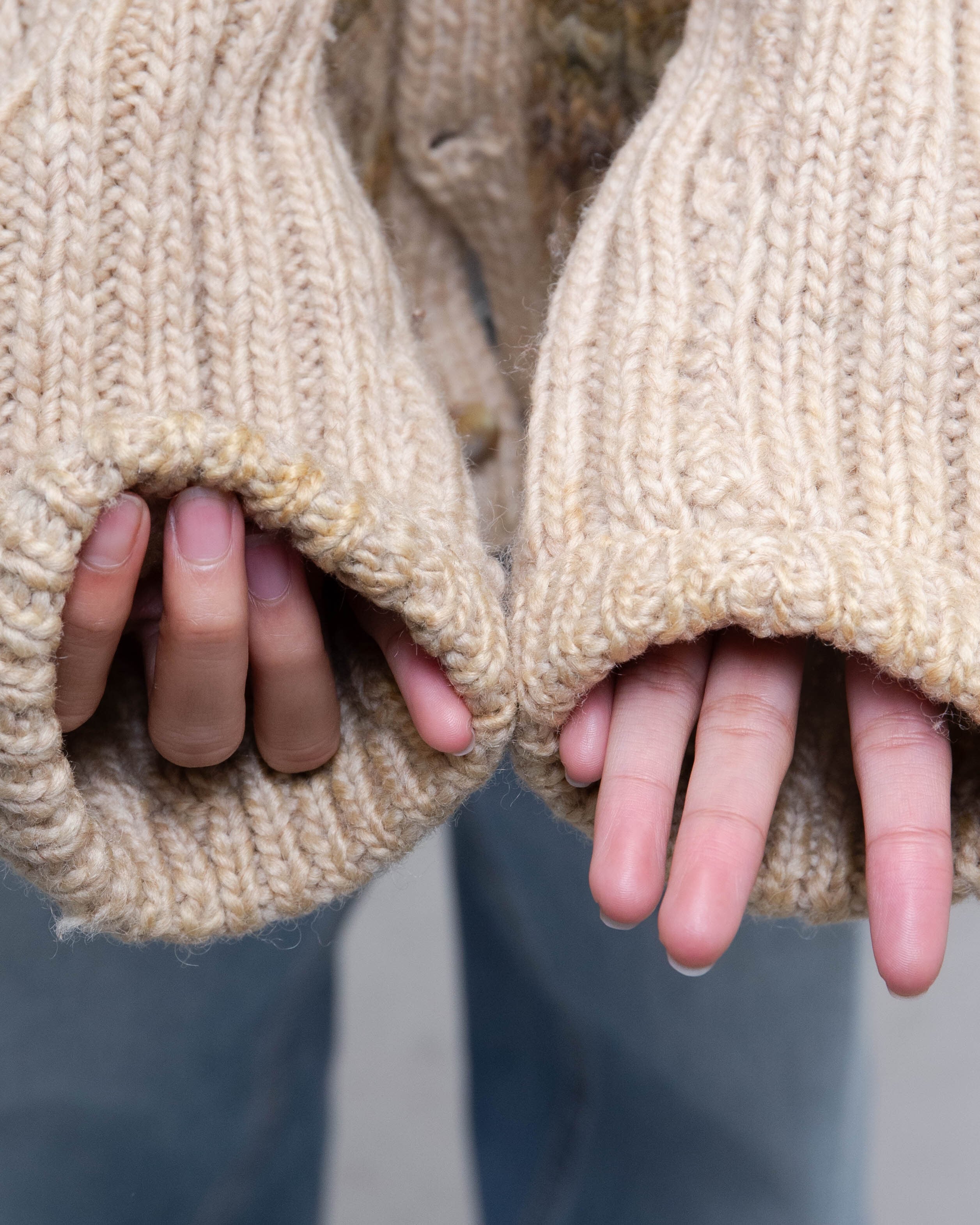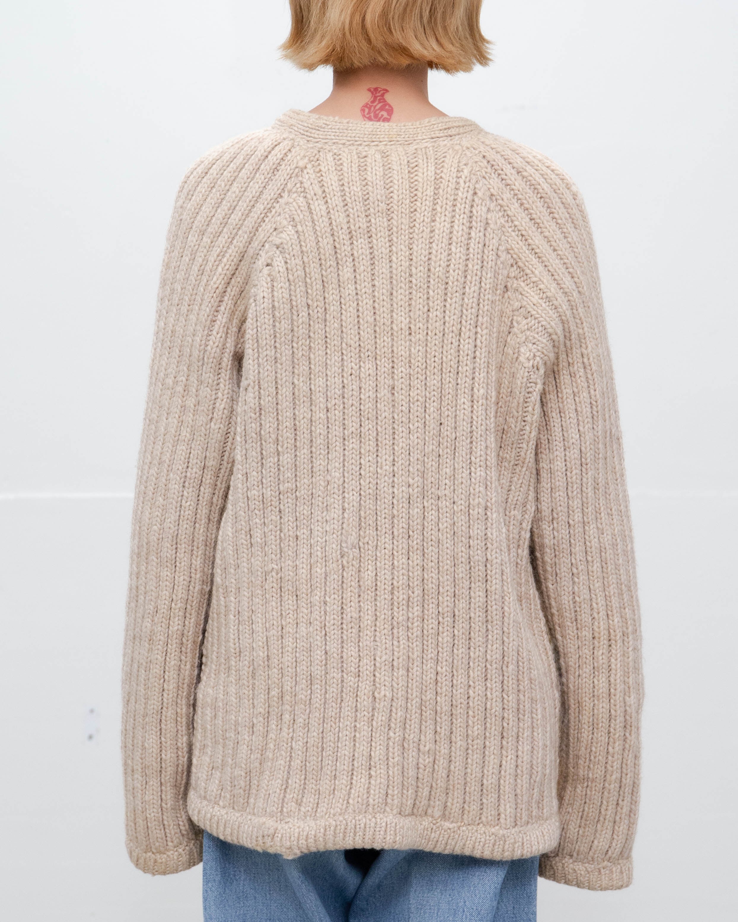 両袖口内側にシミ、後身頃左裾にシミとリペア跡がございます。添付写真をご参照ください。