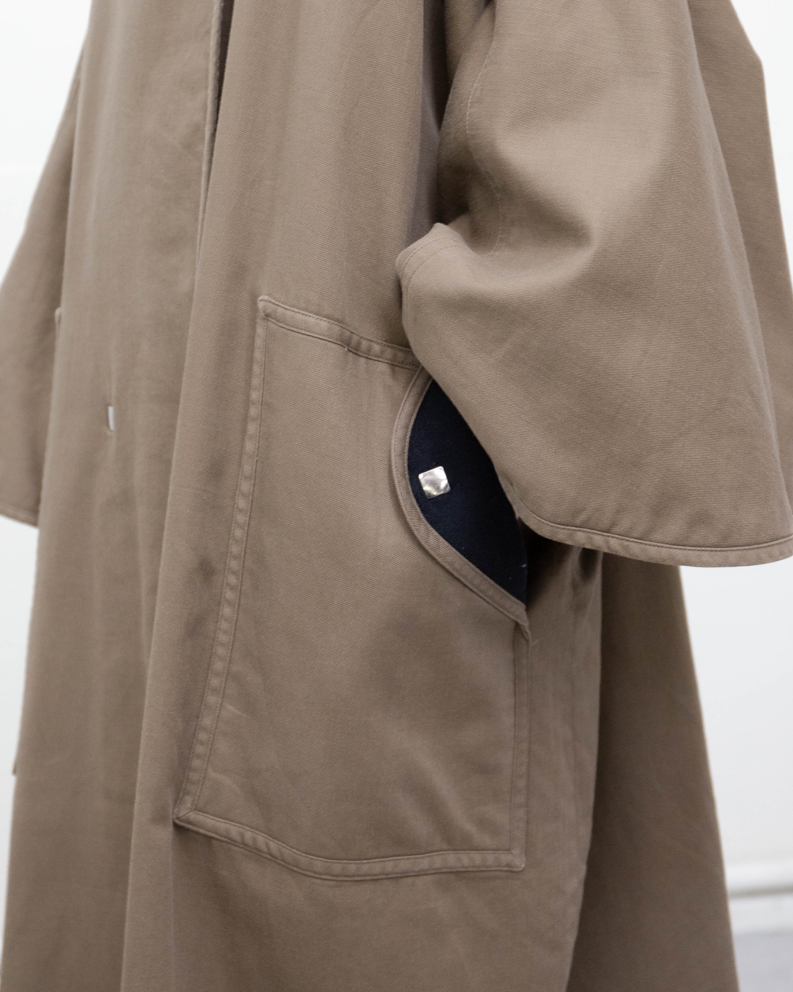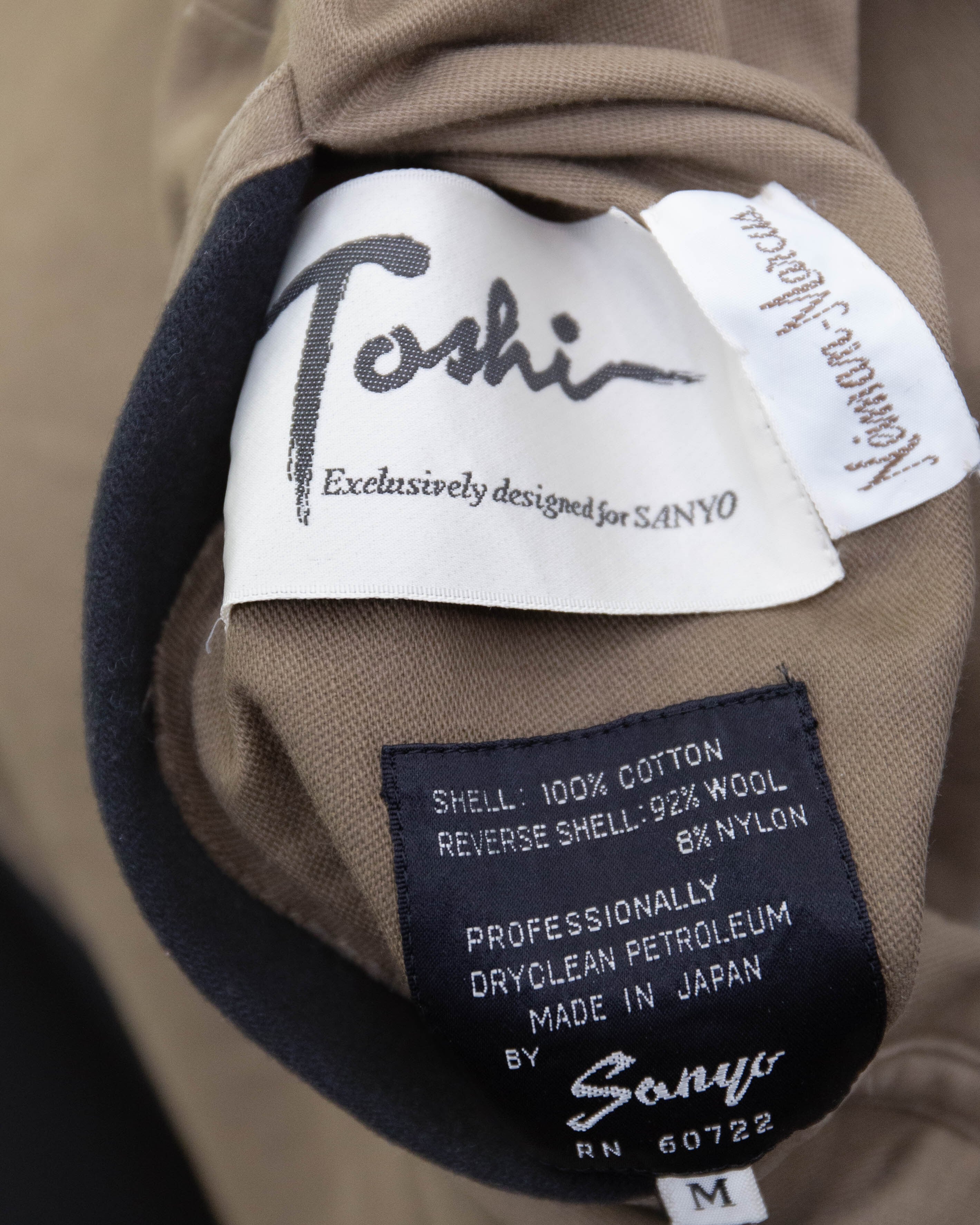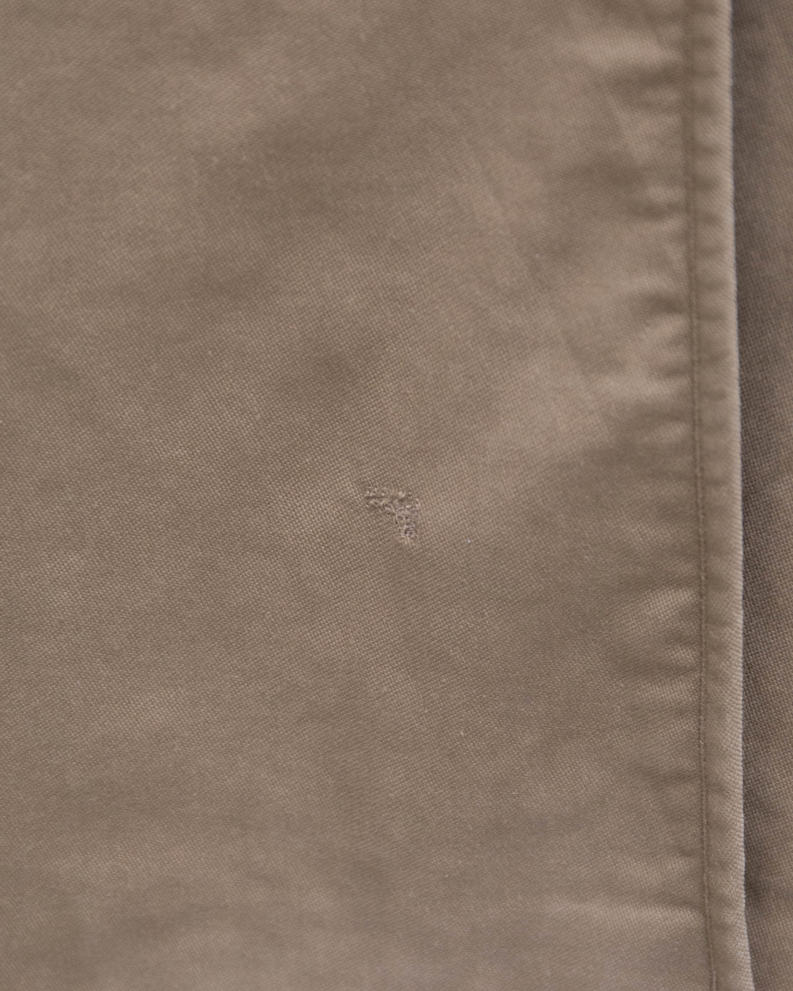 前身頃下部中央にリペア跡、右胸部付近と後身頃左袖上部に薄シミと擦れがございます。添付写真をご参照下さい。