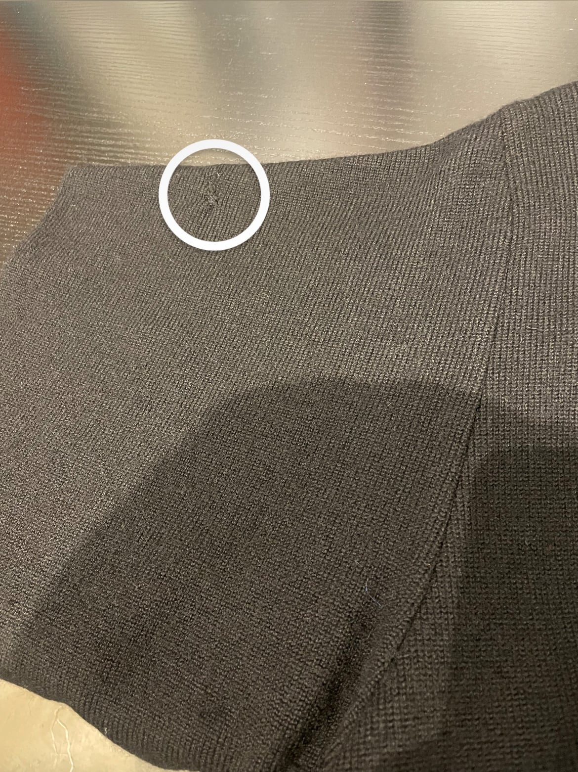 左袖上部と中央部、右袖口、左裏太腿付近にリペア跡がございます。添付写真をご参照ください。
