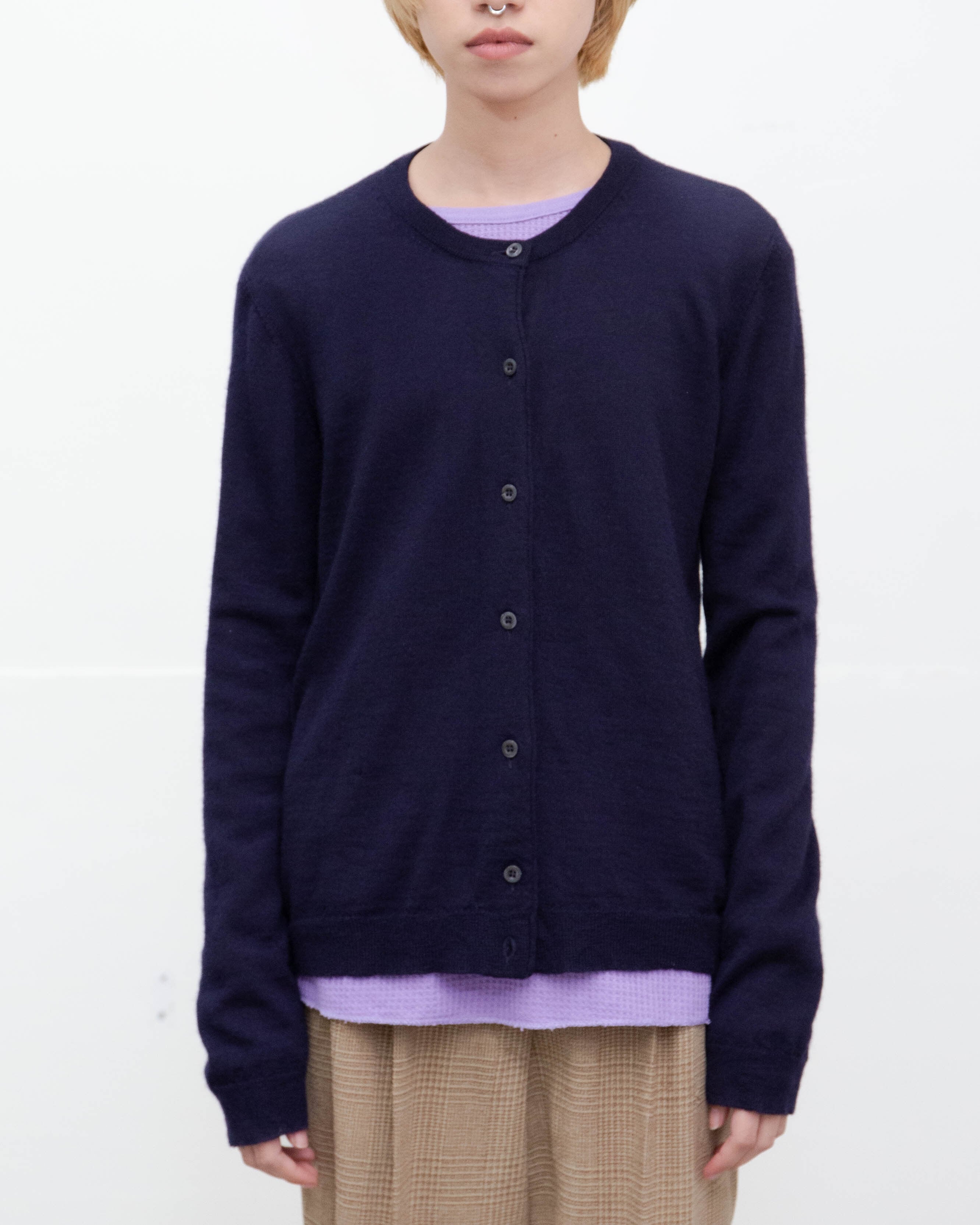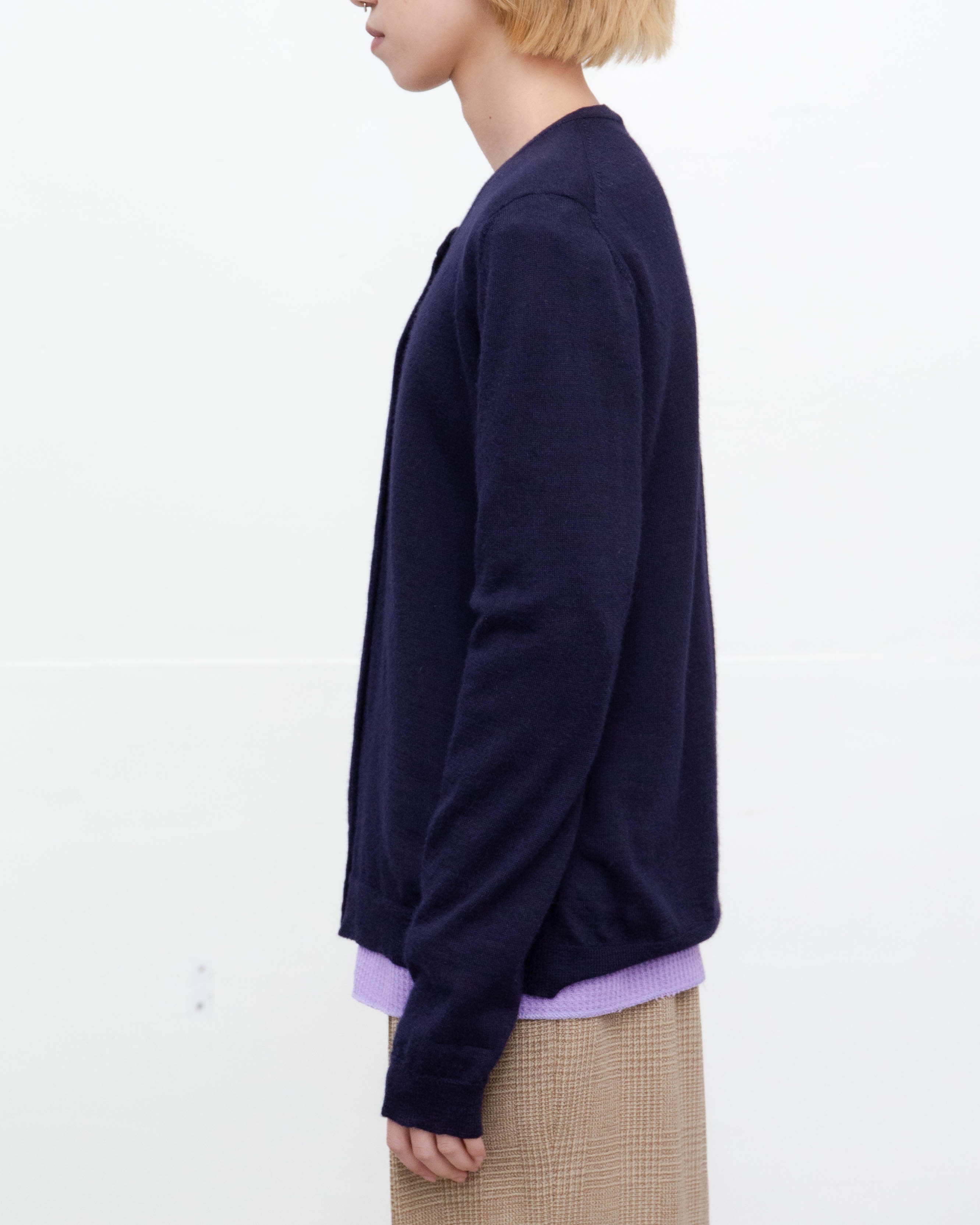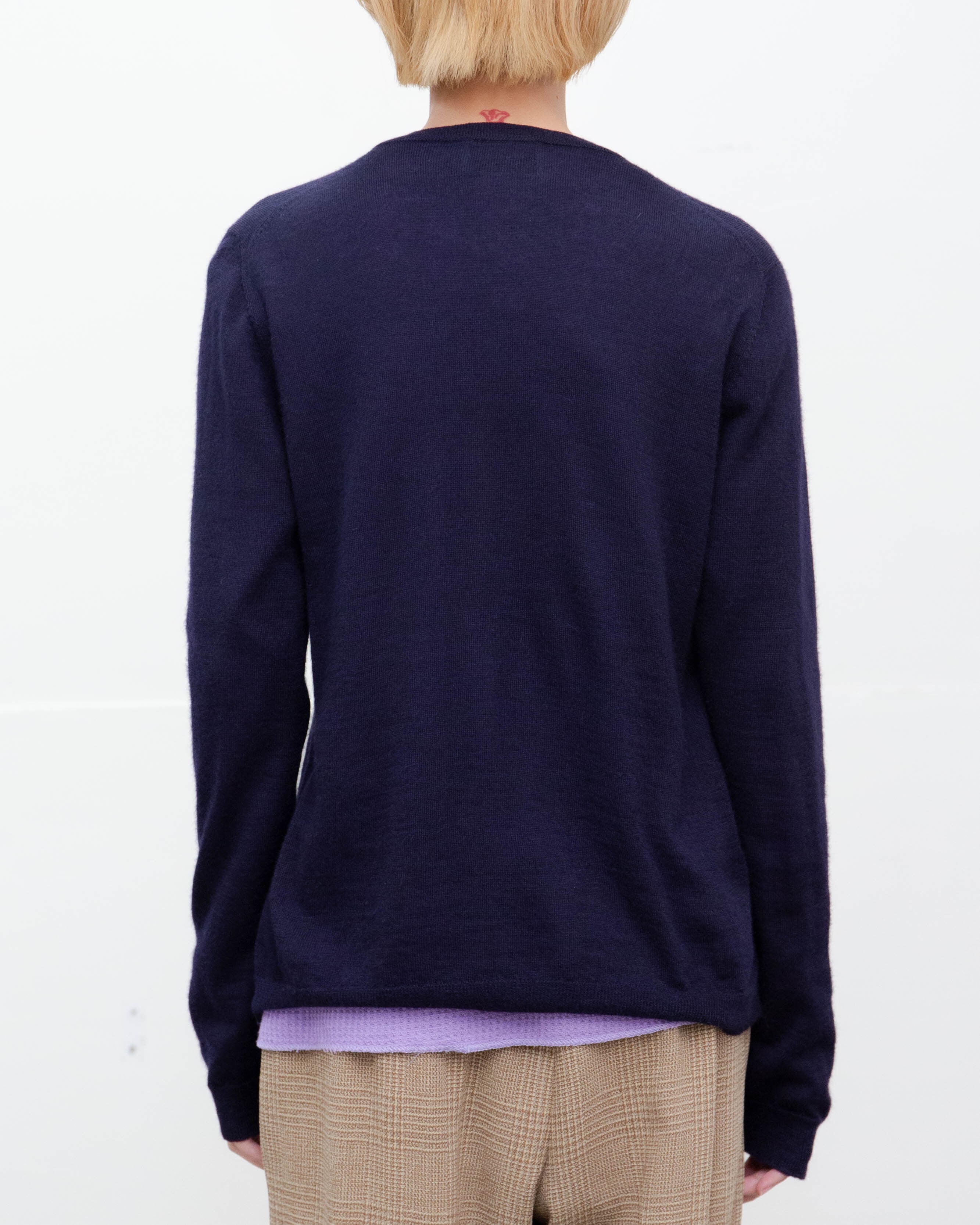 腹部右側、両袖下部に細かいほつれと糸引き、前身頃裾中央にリペア跡がございます。添付写真をご参照ください。