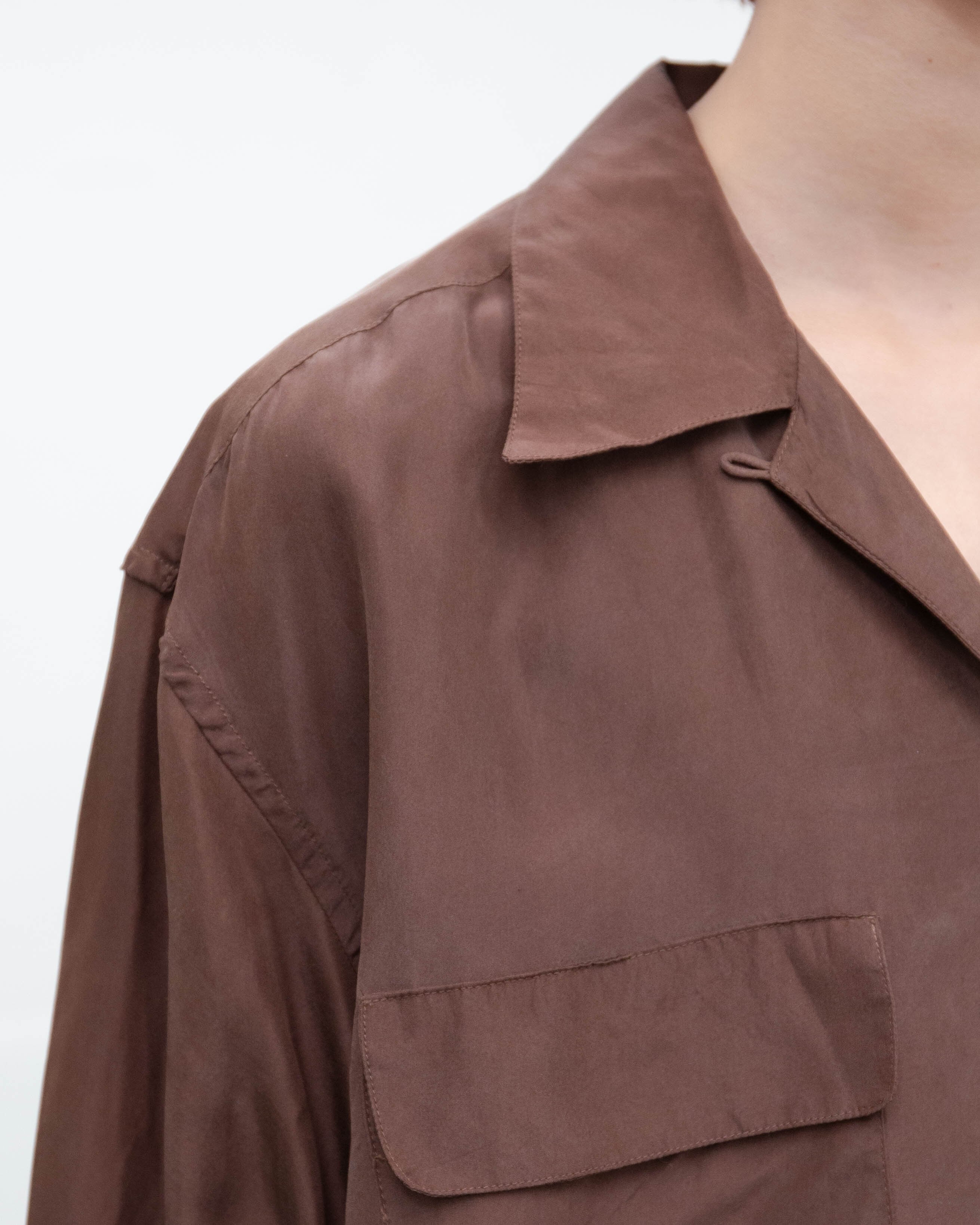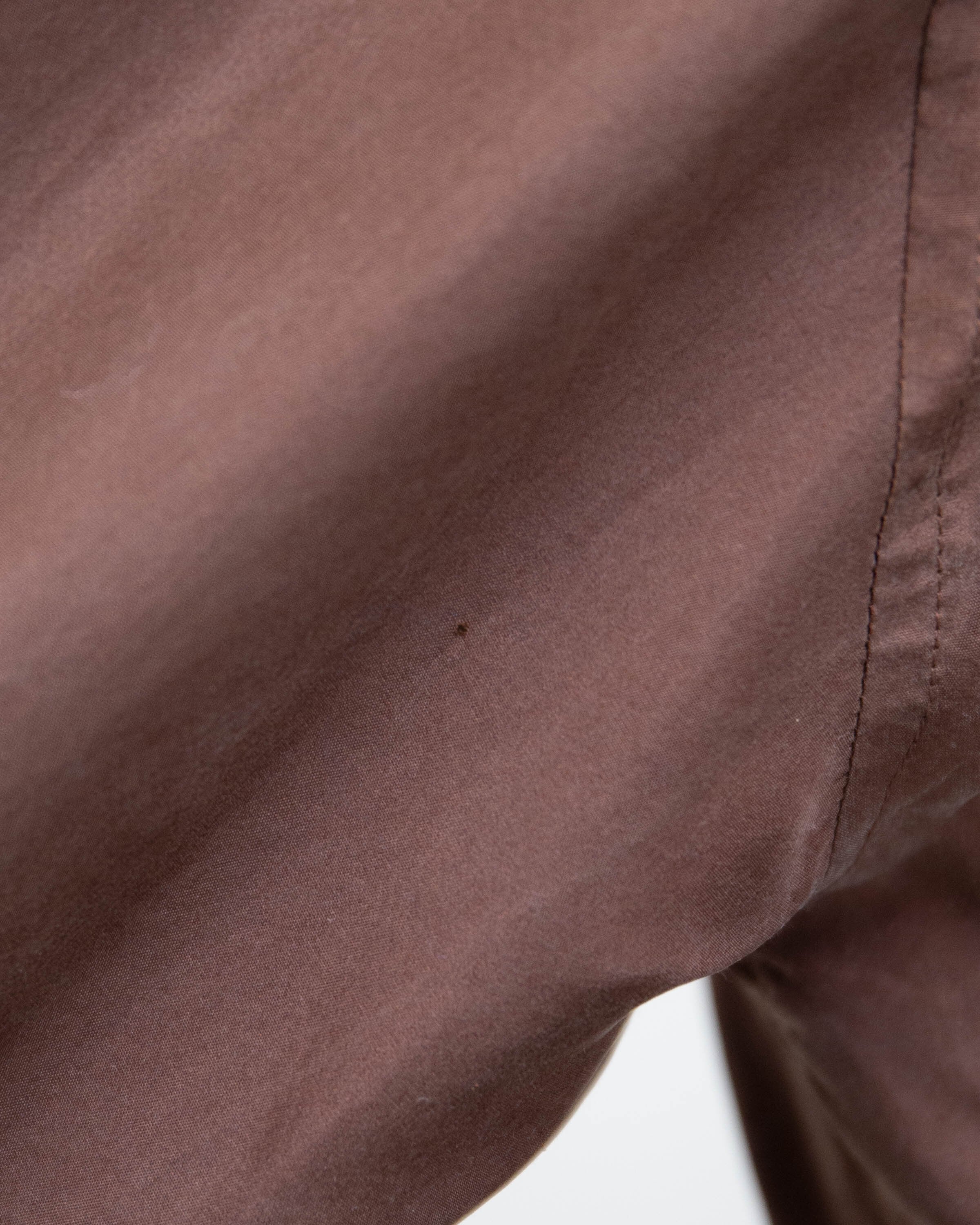 後左袖上部に針穴程度の小穴がございます。添付写真をご参照下さい。