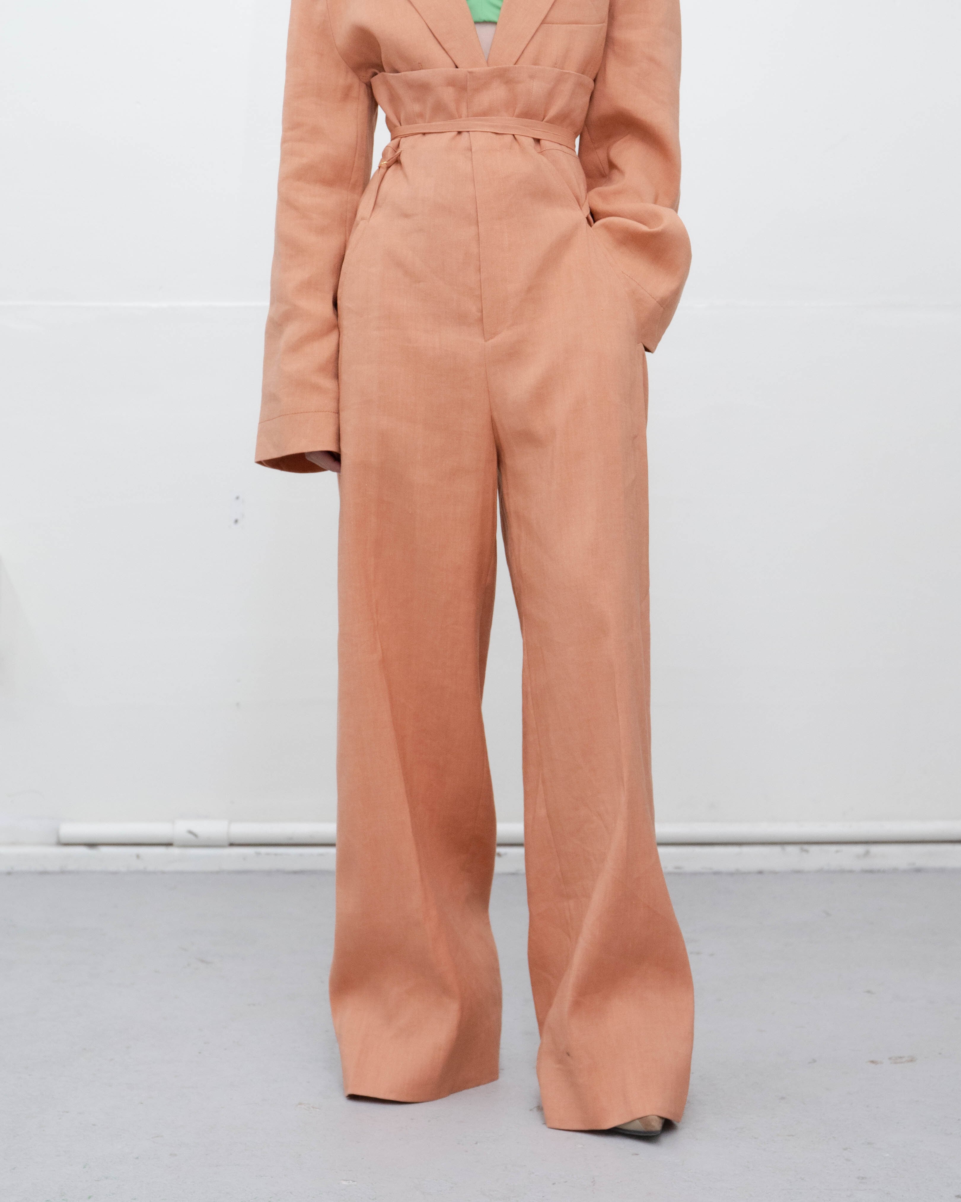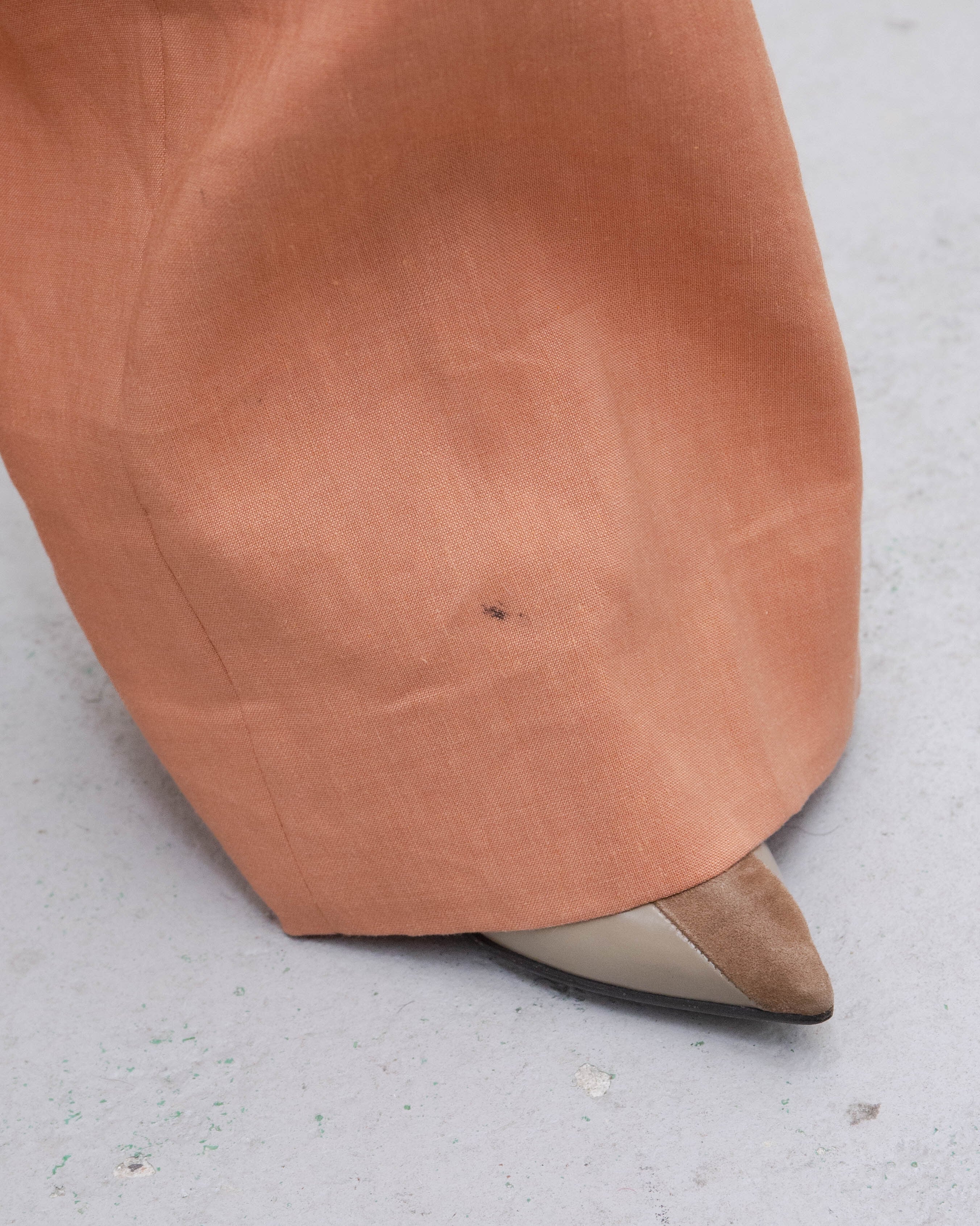 パンツ前身頃左裾にシミがございます。添付写真をご参照ください。