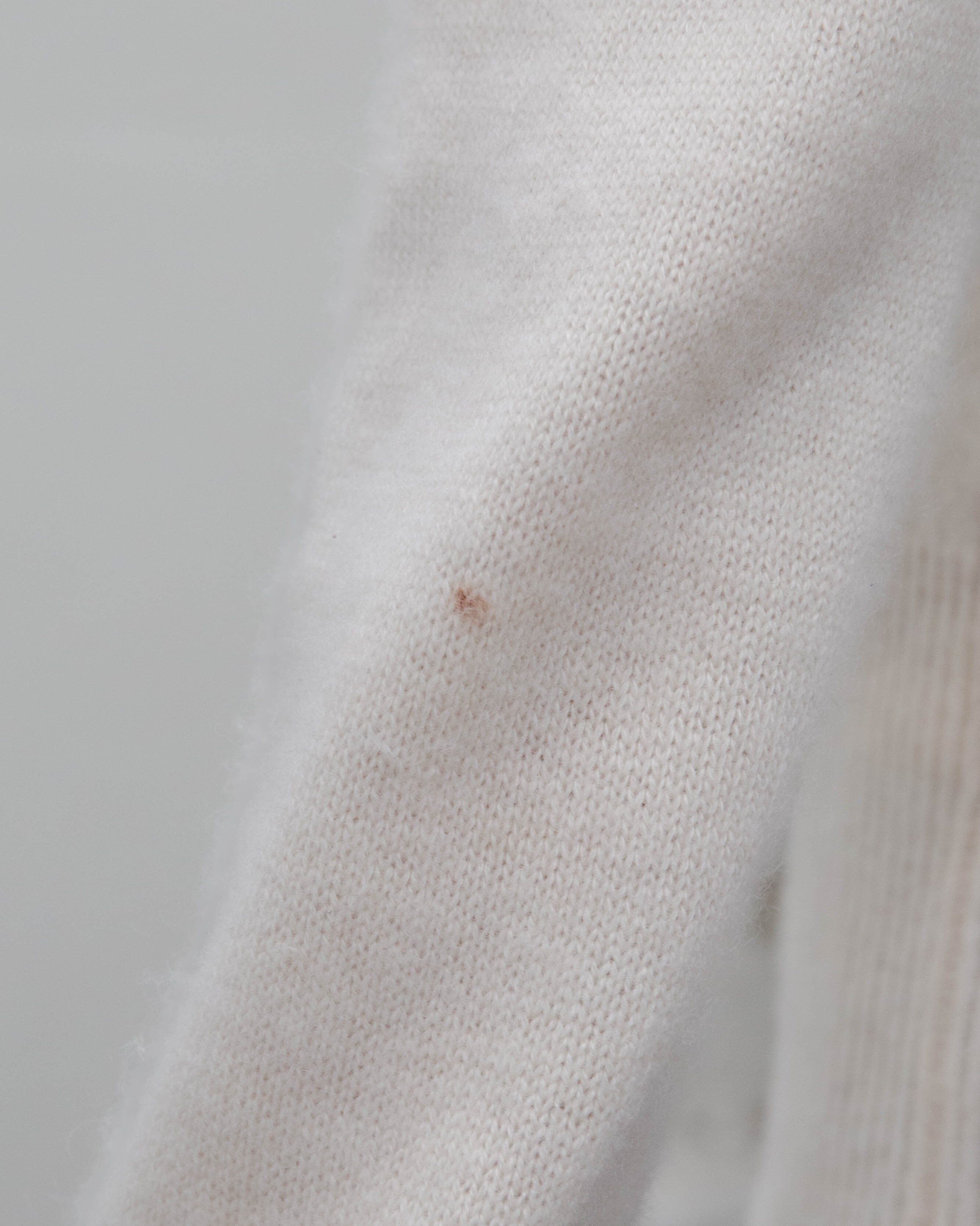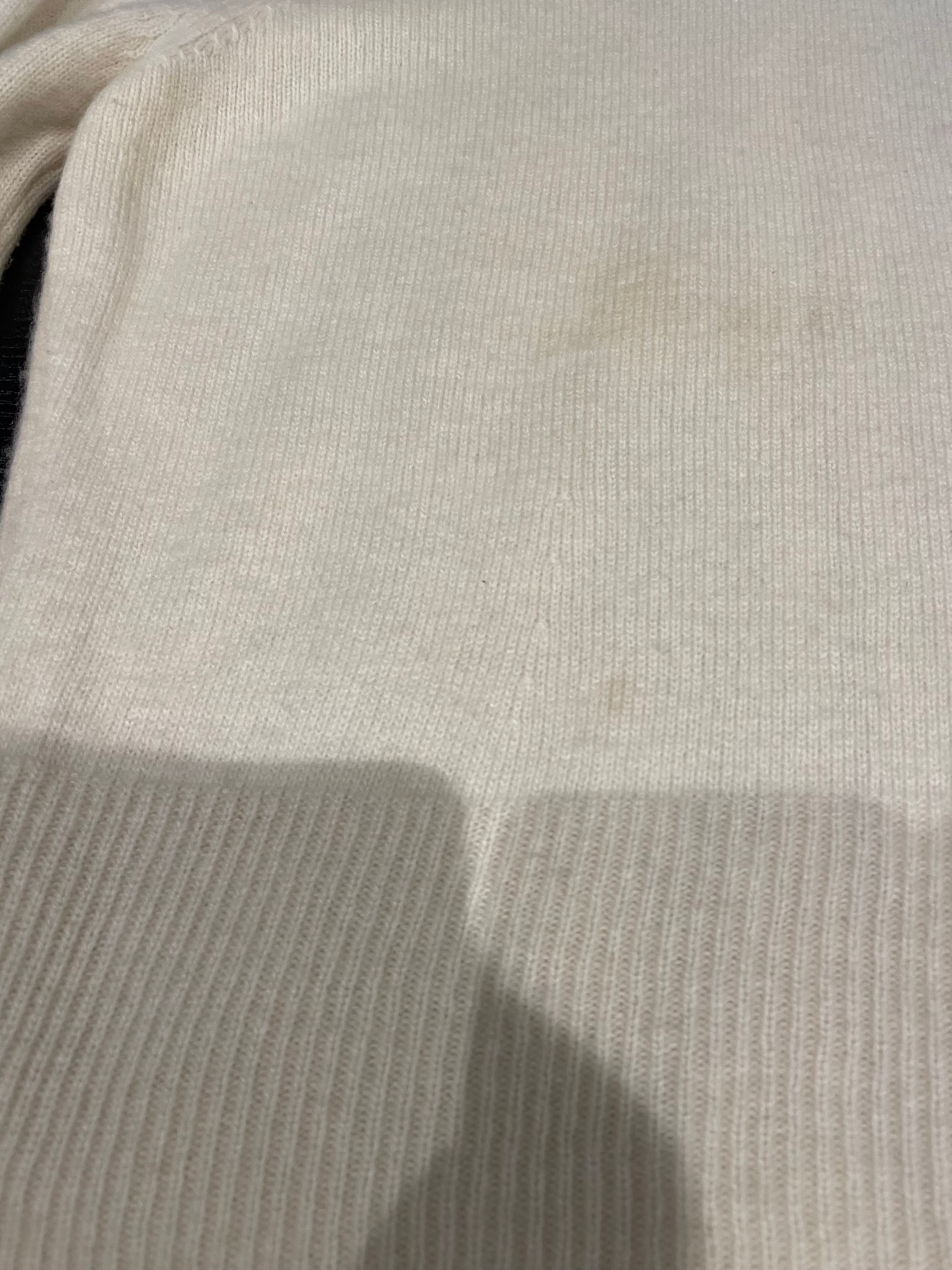 前身頃下部中央・両袖中央・背中下部にシミがございます。添付写真をご参照ください。