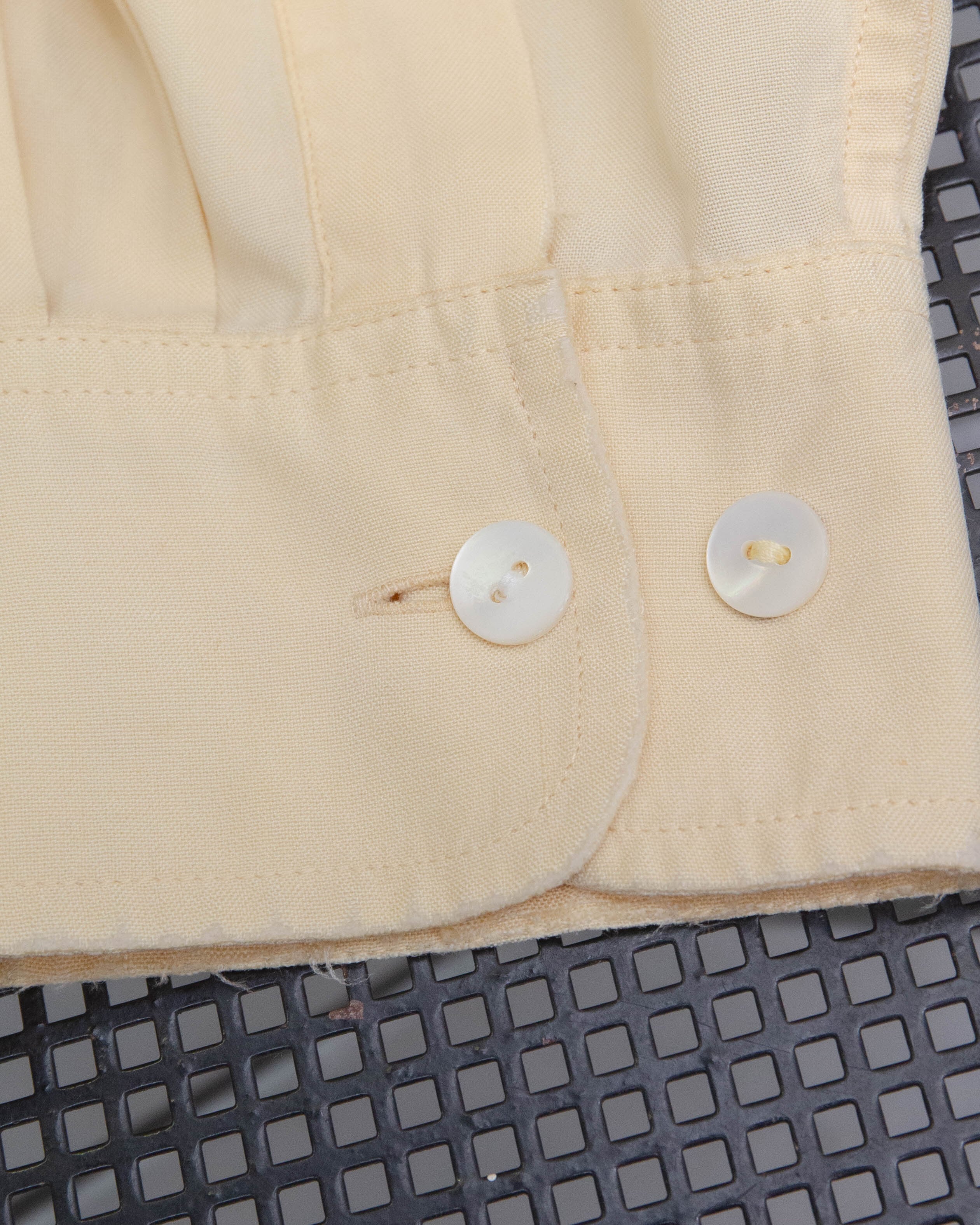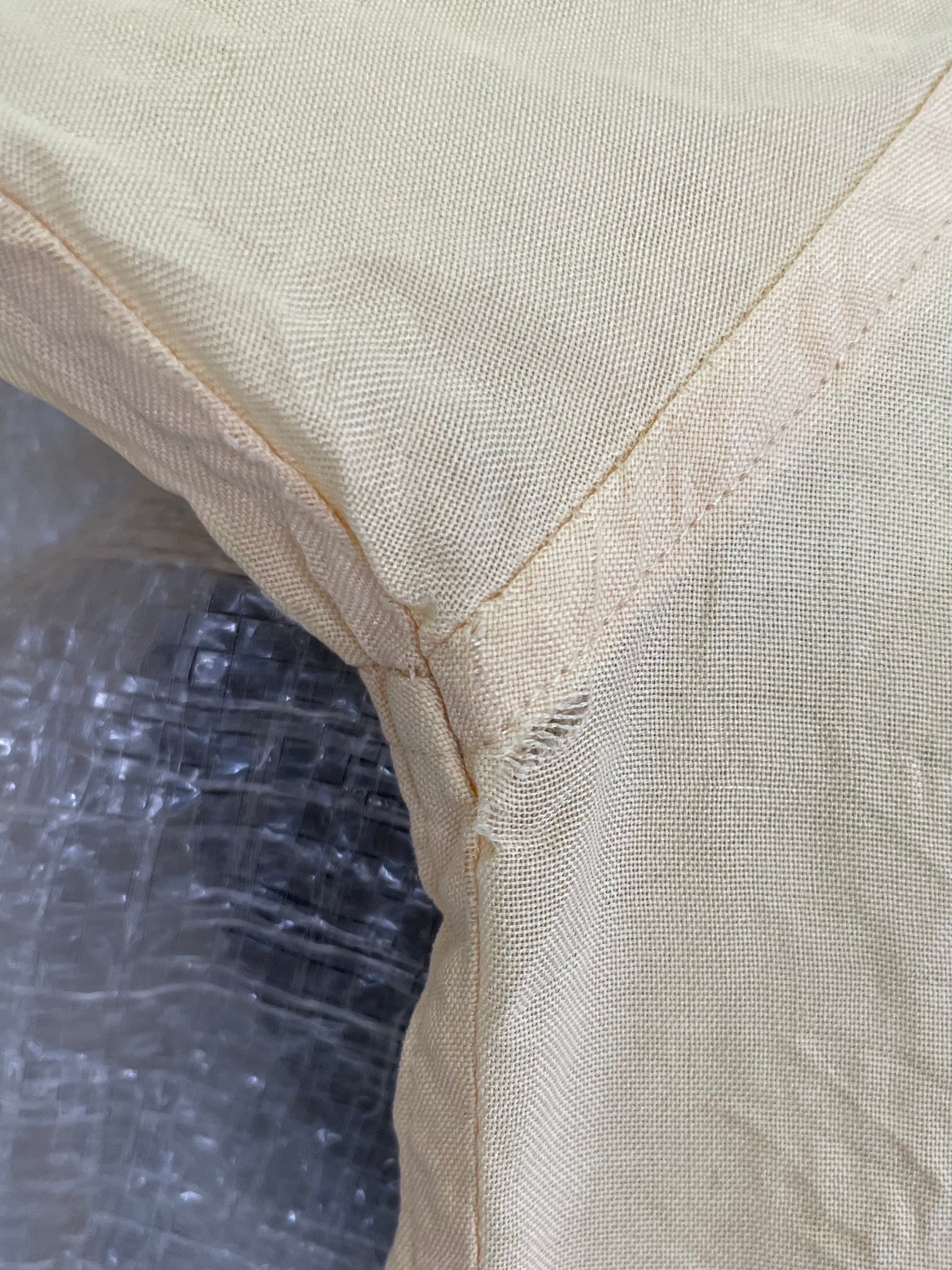 右袖口にシミ、両袖口と右脇にほつれがございます。添付写真をご参照ください。