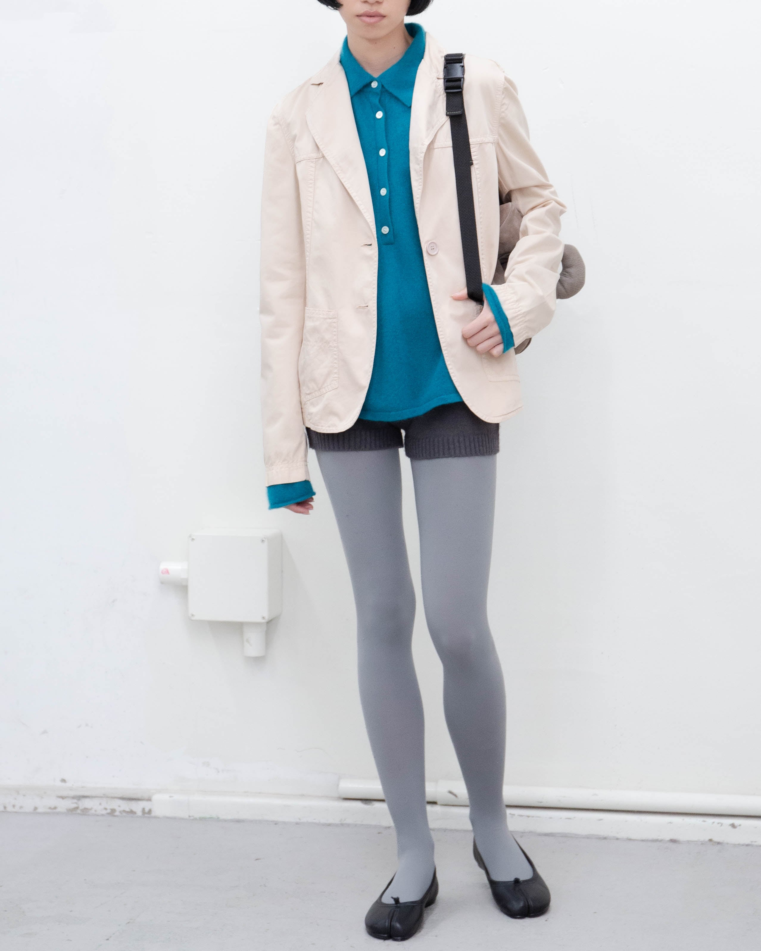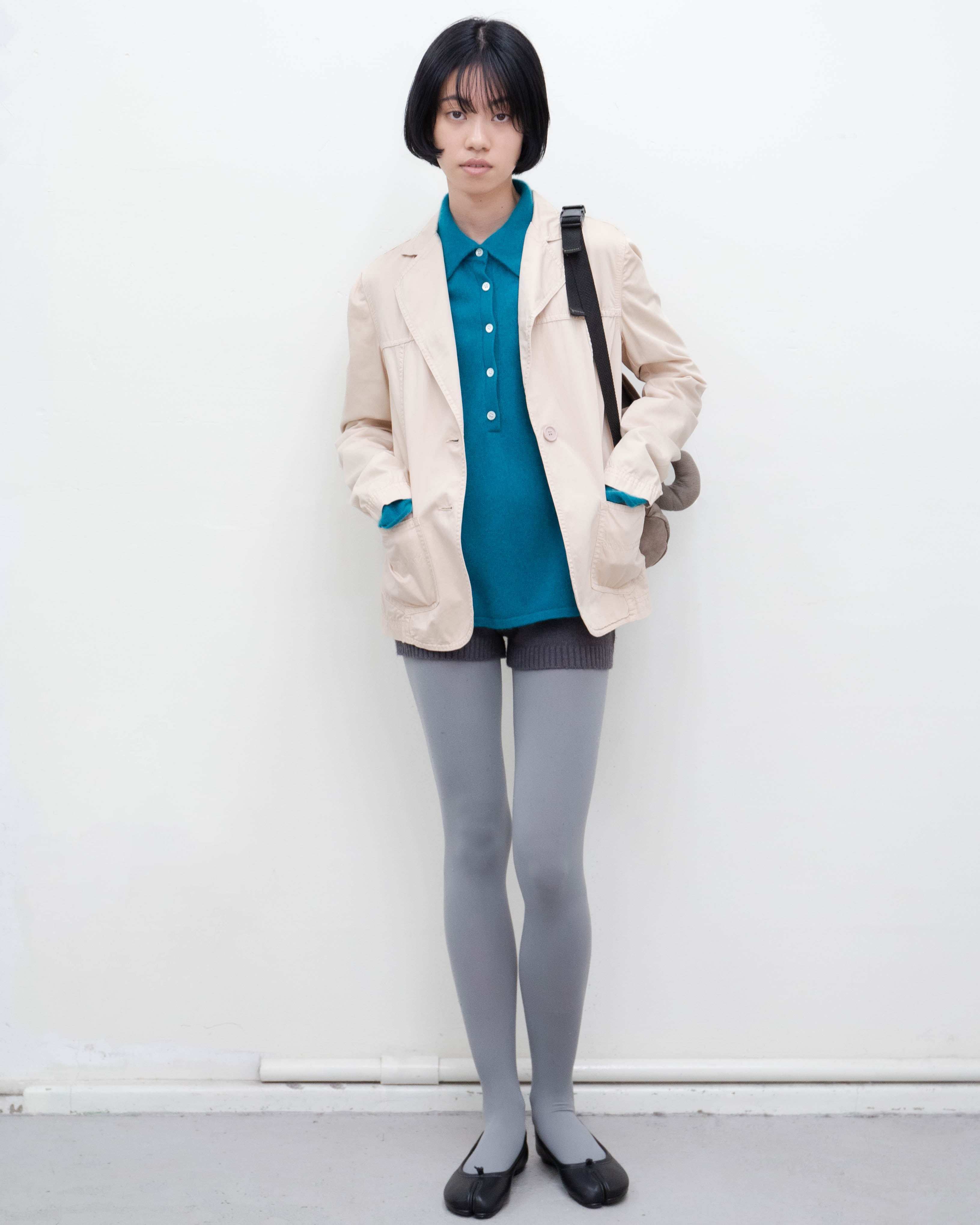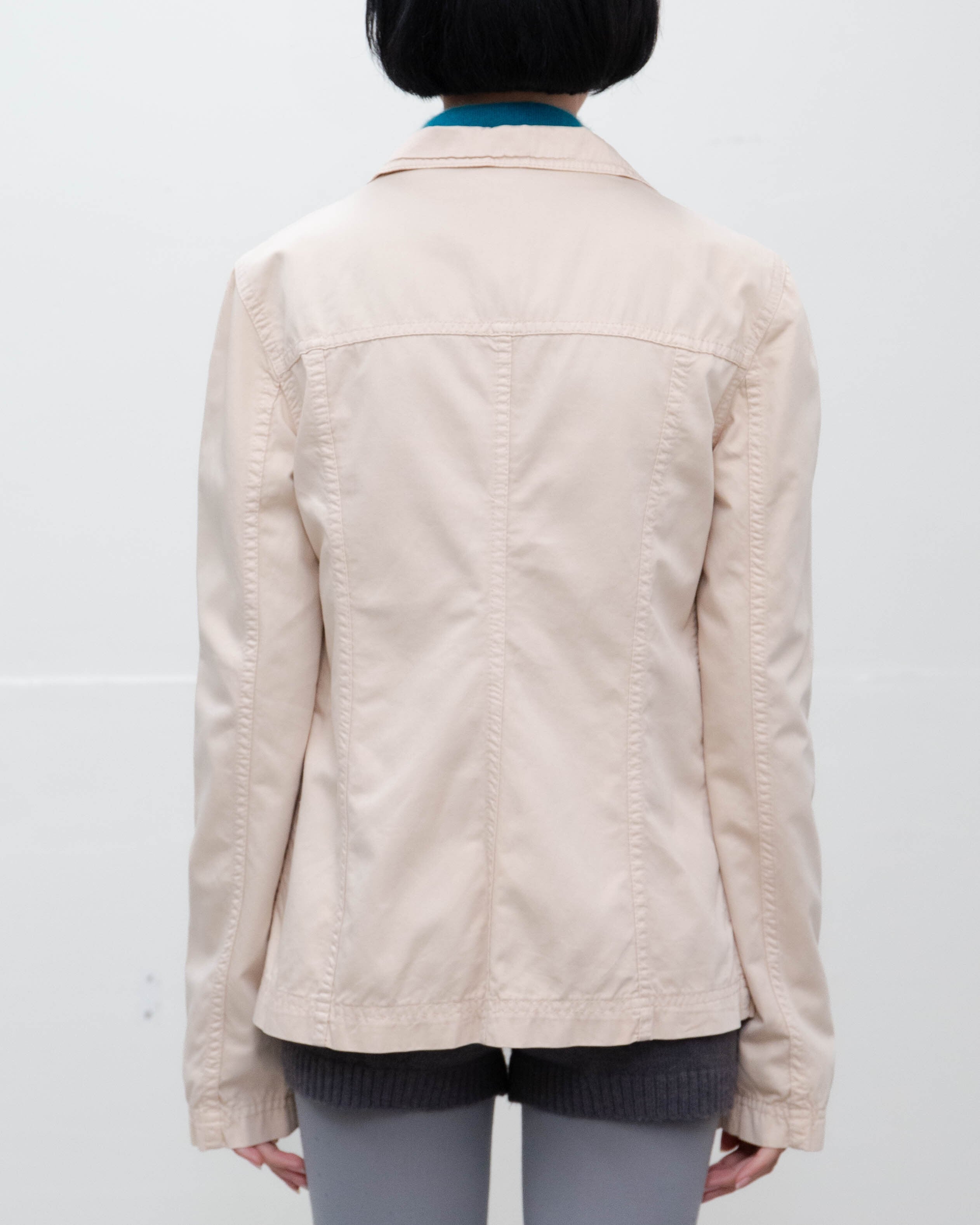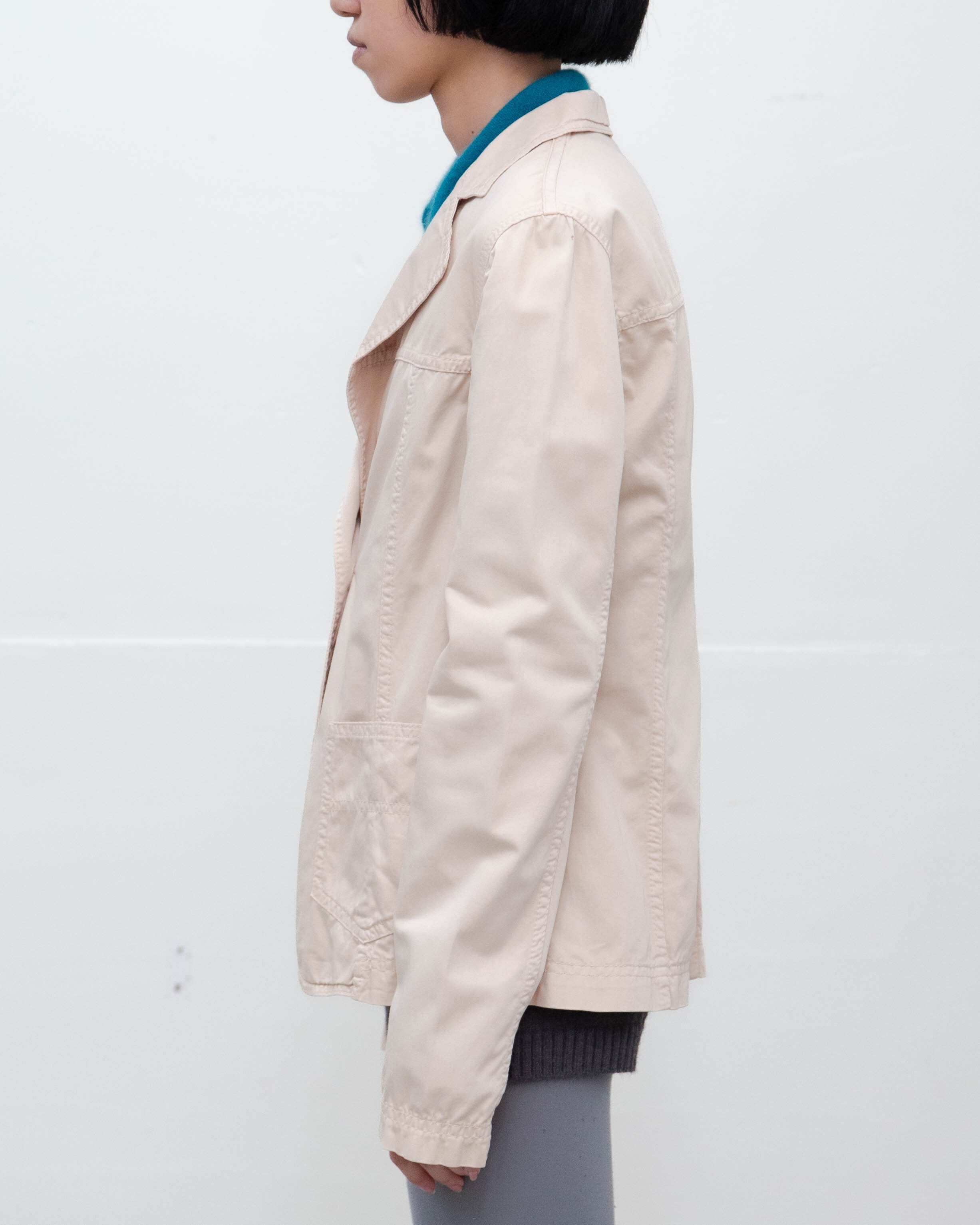 前身頃下部、右袖口、左肩に細かいシミがございます。添付写真をご参照ください。