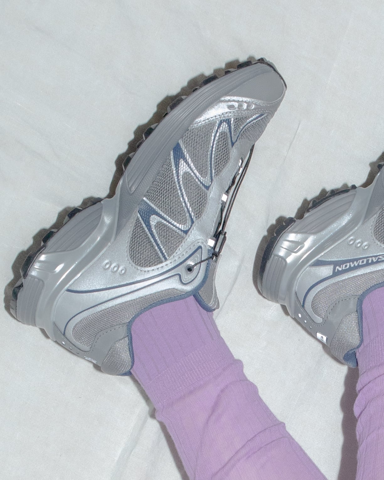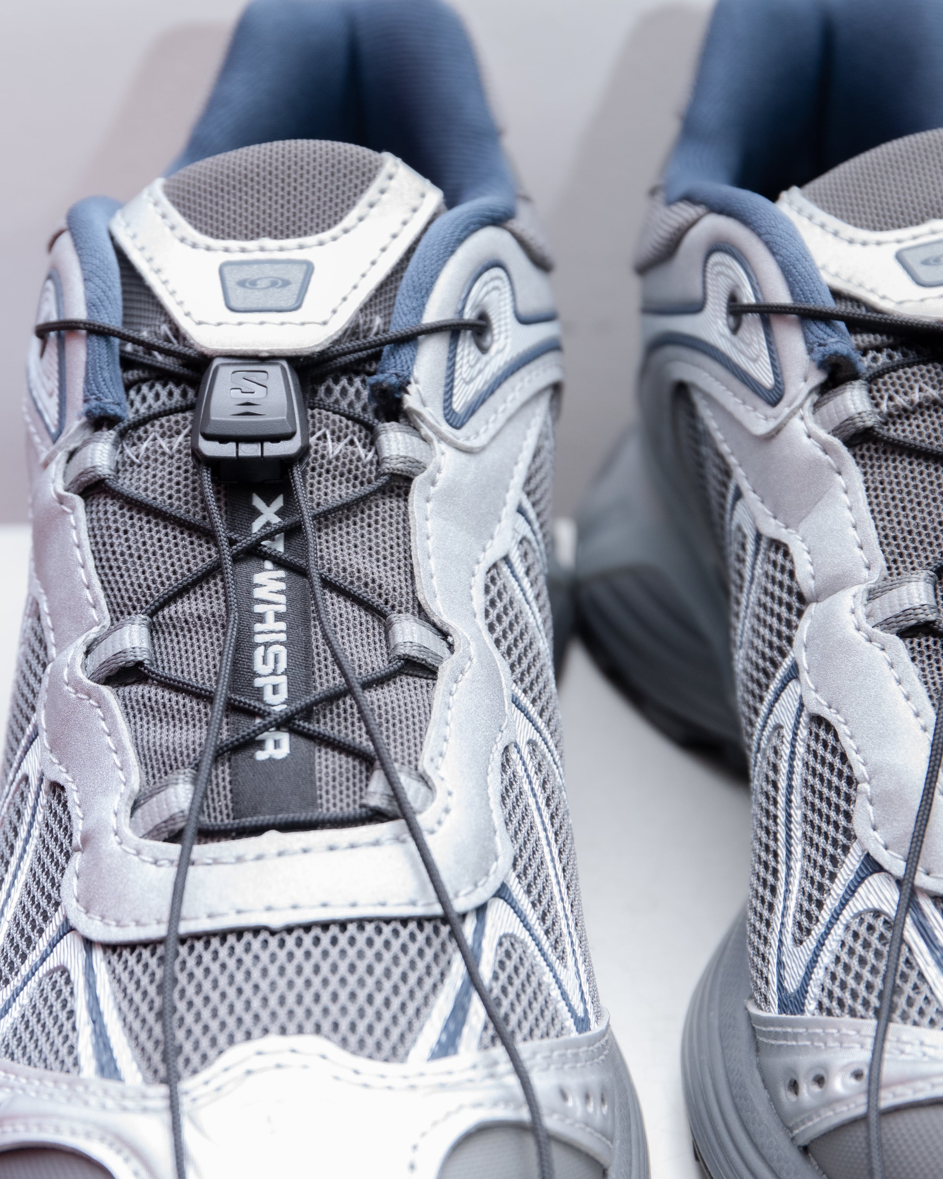 Salomon の DNA と XT のデザイン系譜を受け継ぐ XT-Whisper は、独特の質感や、レイヤー構造の高級感のある仕上げを特徴としている。コントラストのあるディテールが際立ち、独自の波状の SensiFitTM と QuicklaceTM を組み合わせることで、フィット感のある信頼できるホー ルド感を実現している。