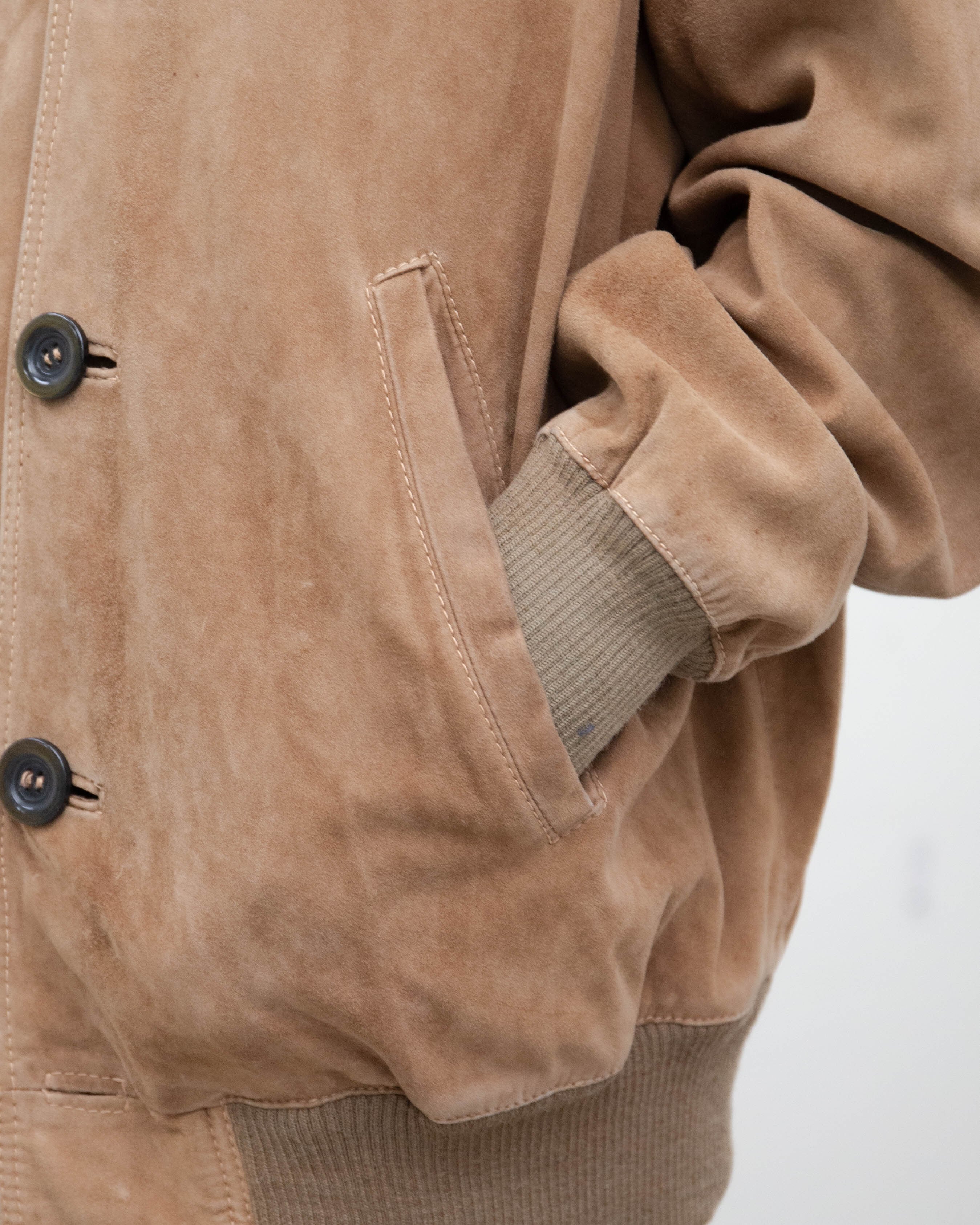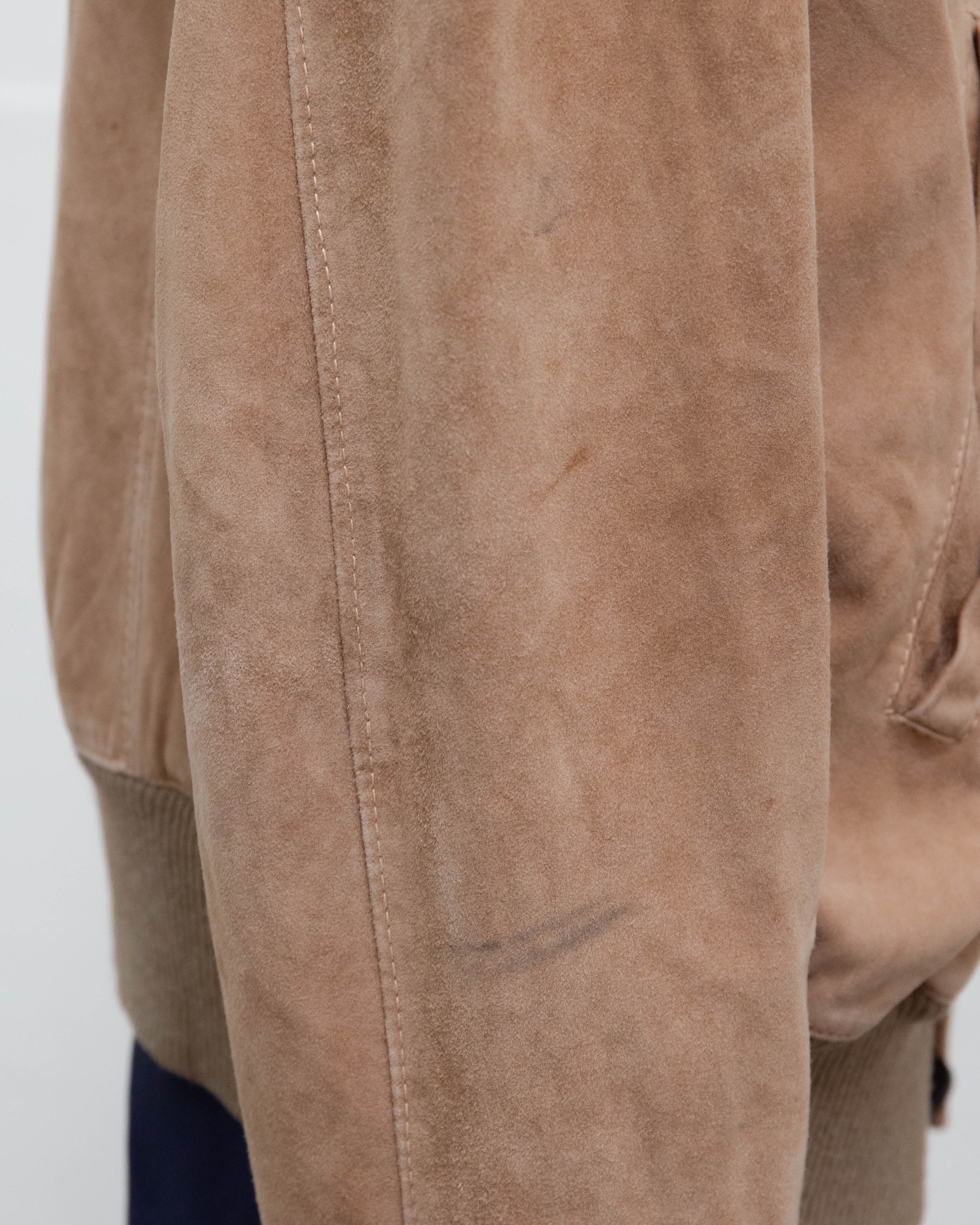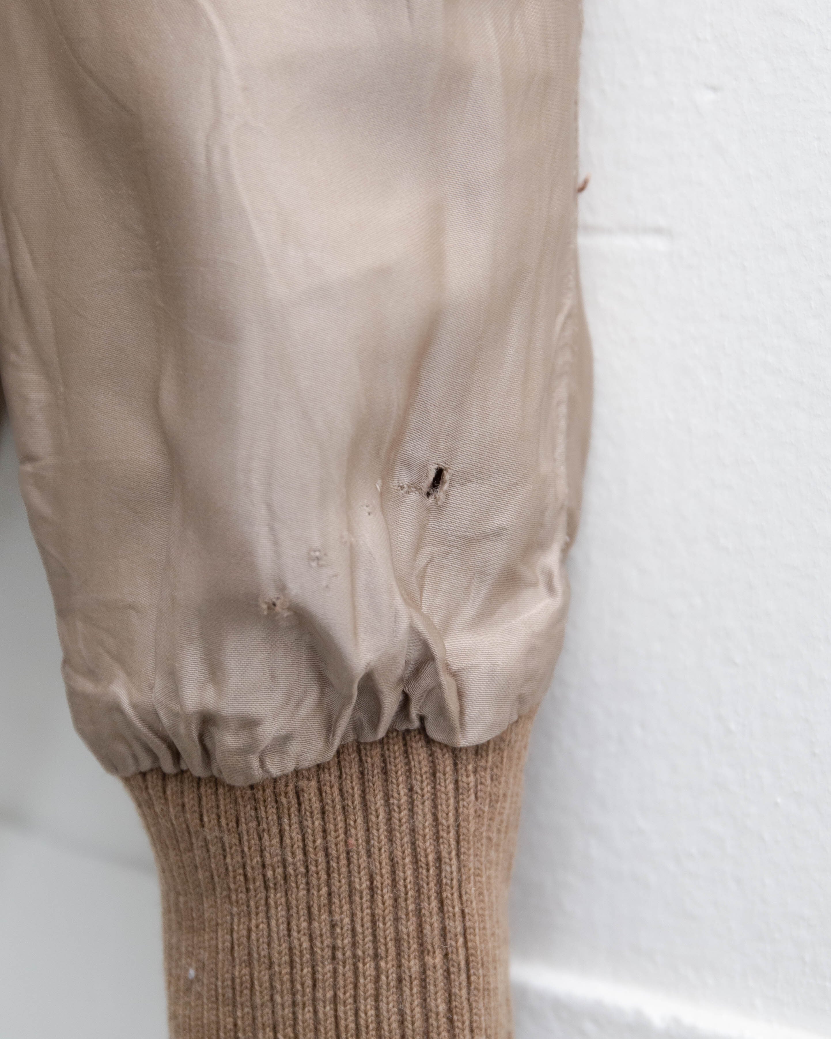 右袖中央から下部に擦れ、左袖下部に細かいシミ、裏地右裾に小穴がございます。添付写真をご参照ください。