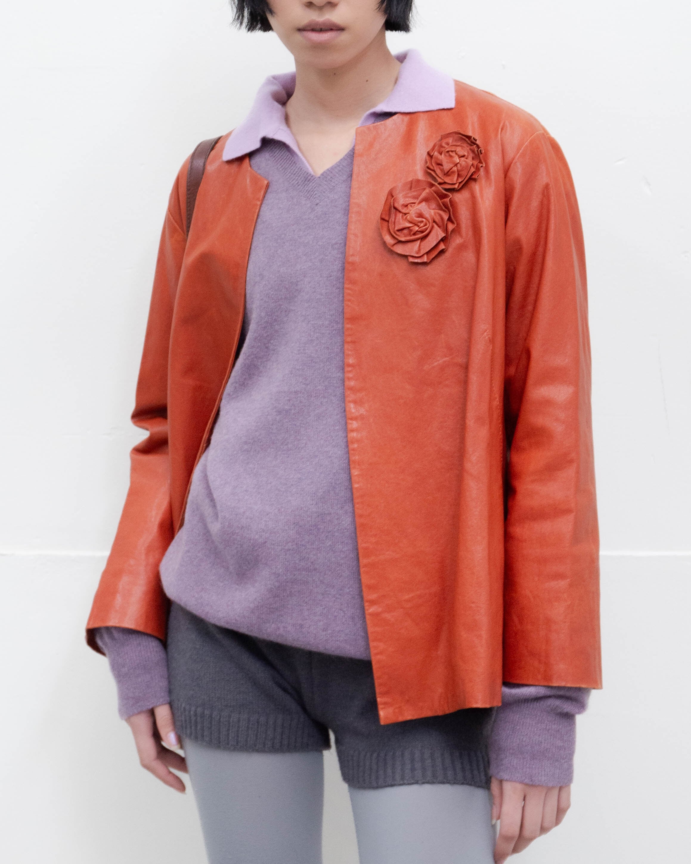 前身頃左胸部、左脇、後襟にシミ、右袖口付近にリペア跡がございます。添付写真をご参照ください。
