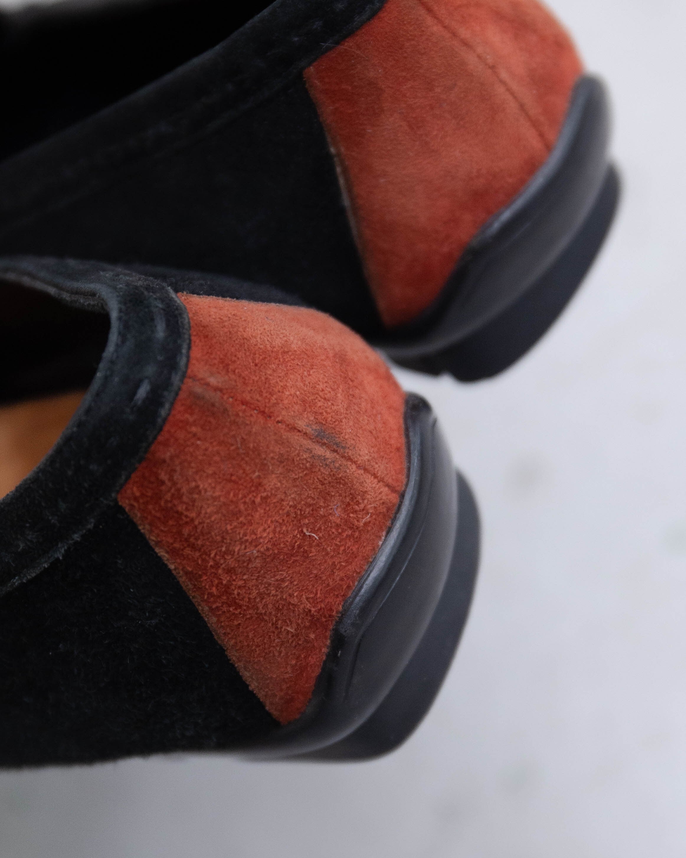 両アッパー、踵ともに擦れによるダメージがございます。添付写真をご参照ください。