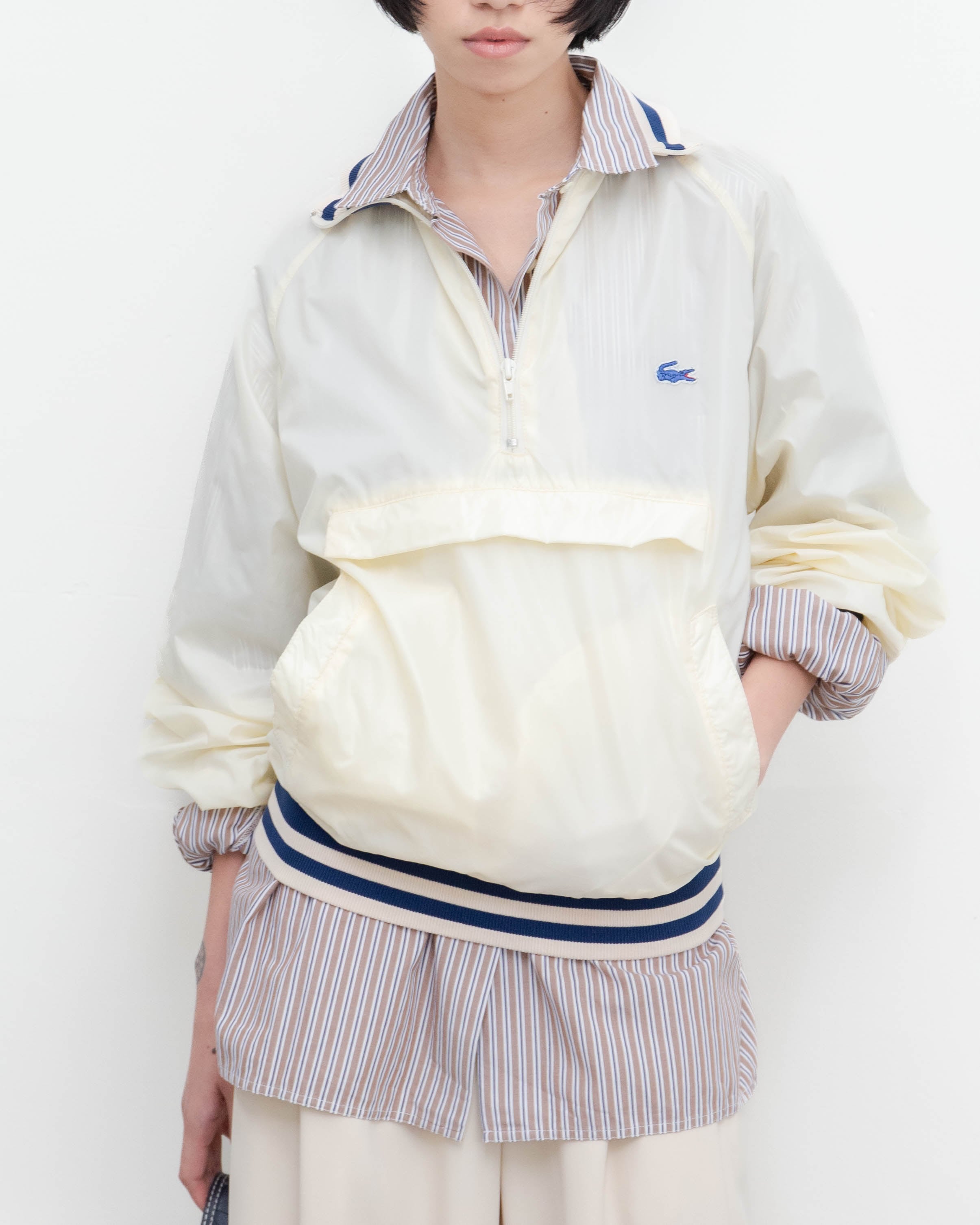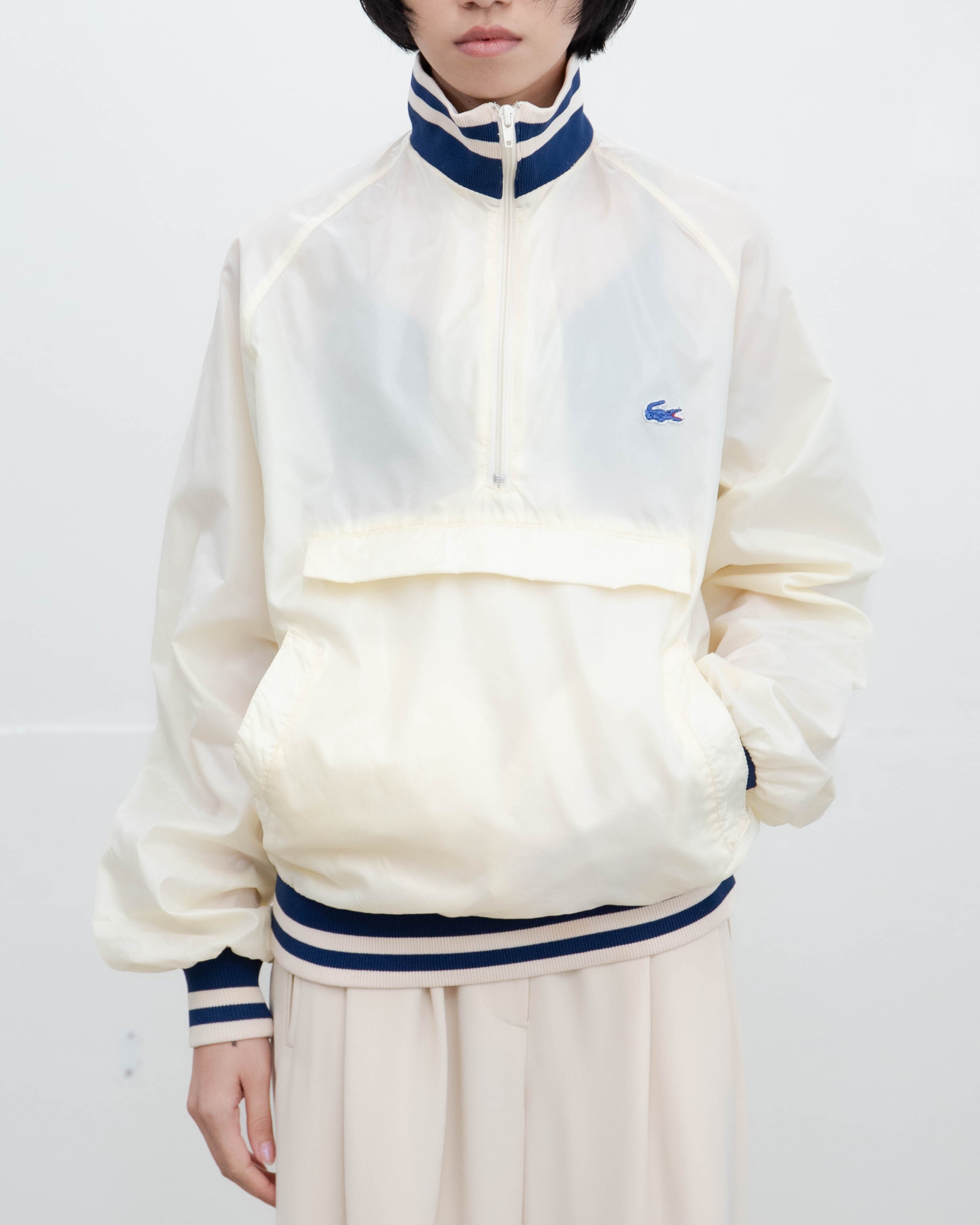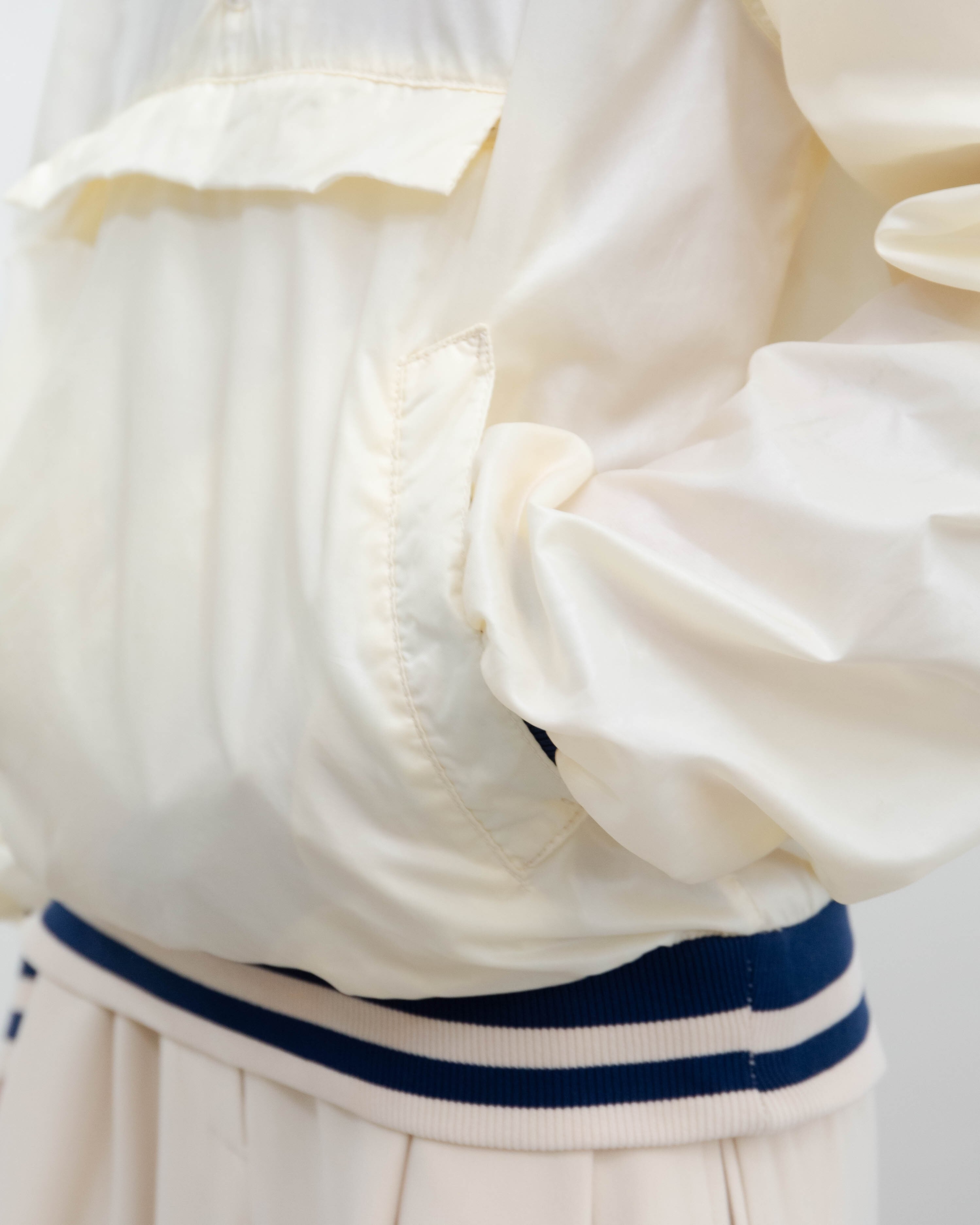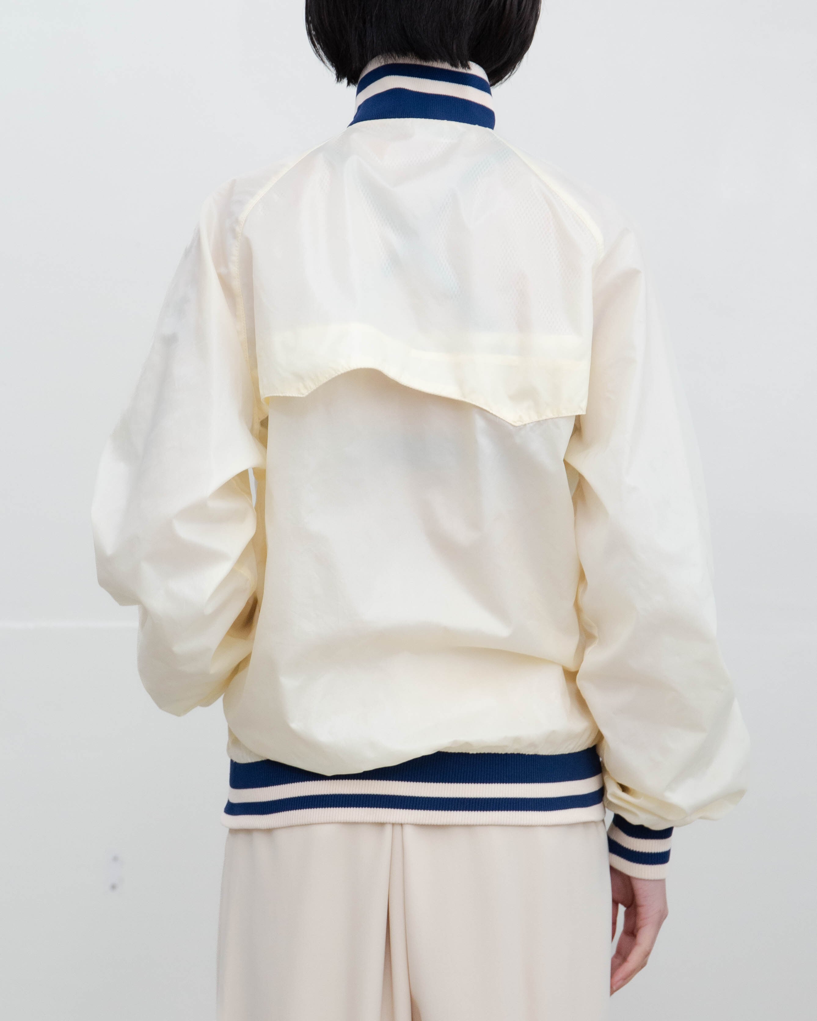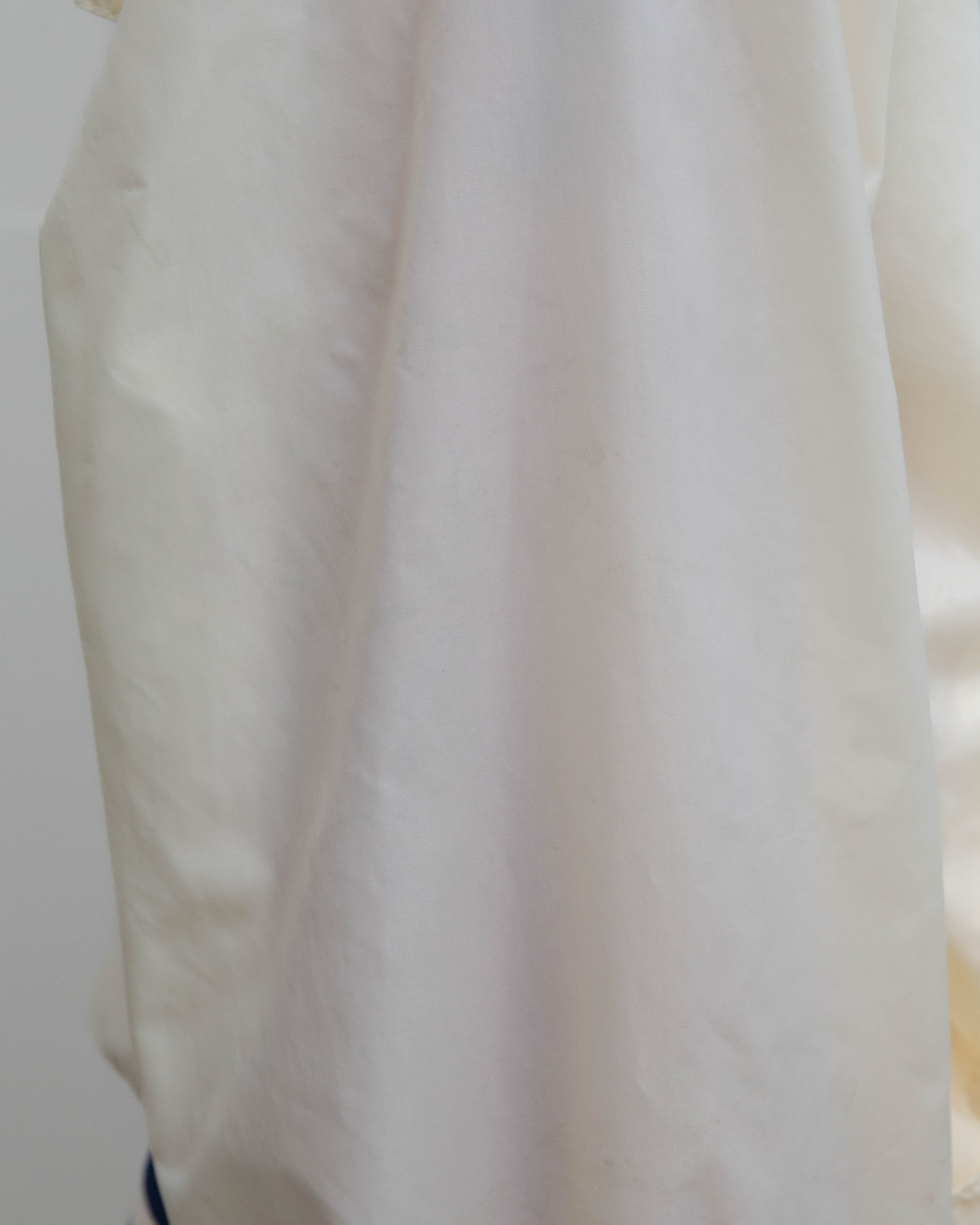 後身頃右下部、右袖下部、左袖全体、首と裾リブ、フロントポッケ裏地にシミ、色移りがございます。添付写真をご参照ください。