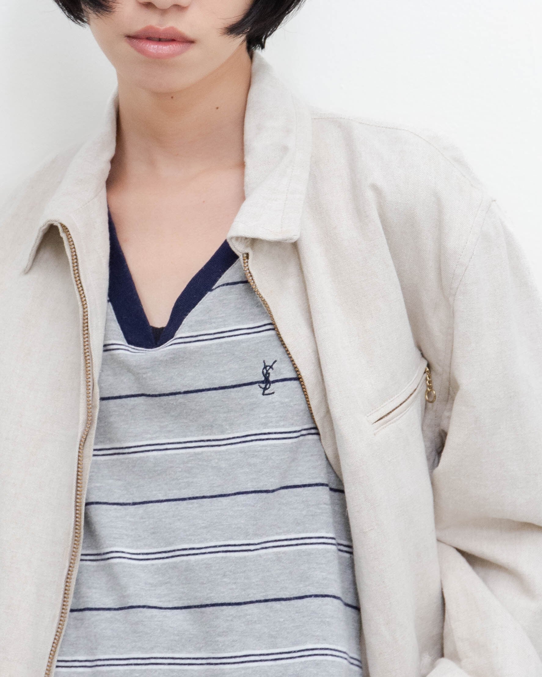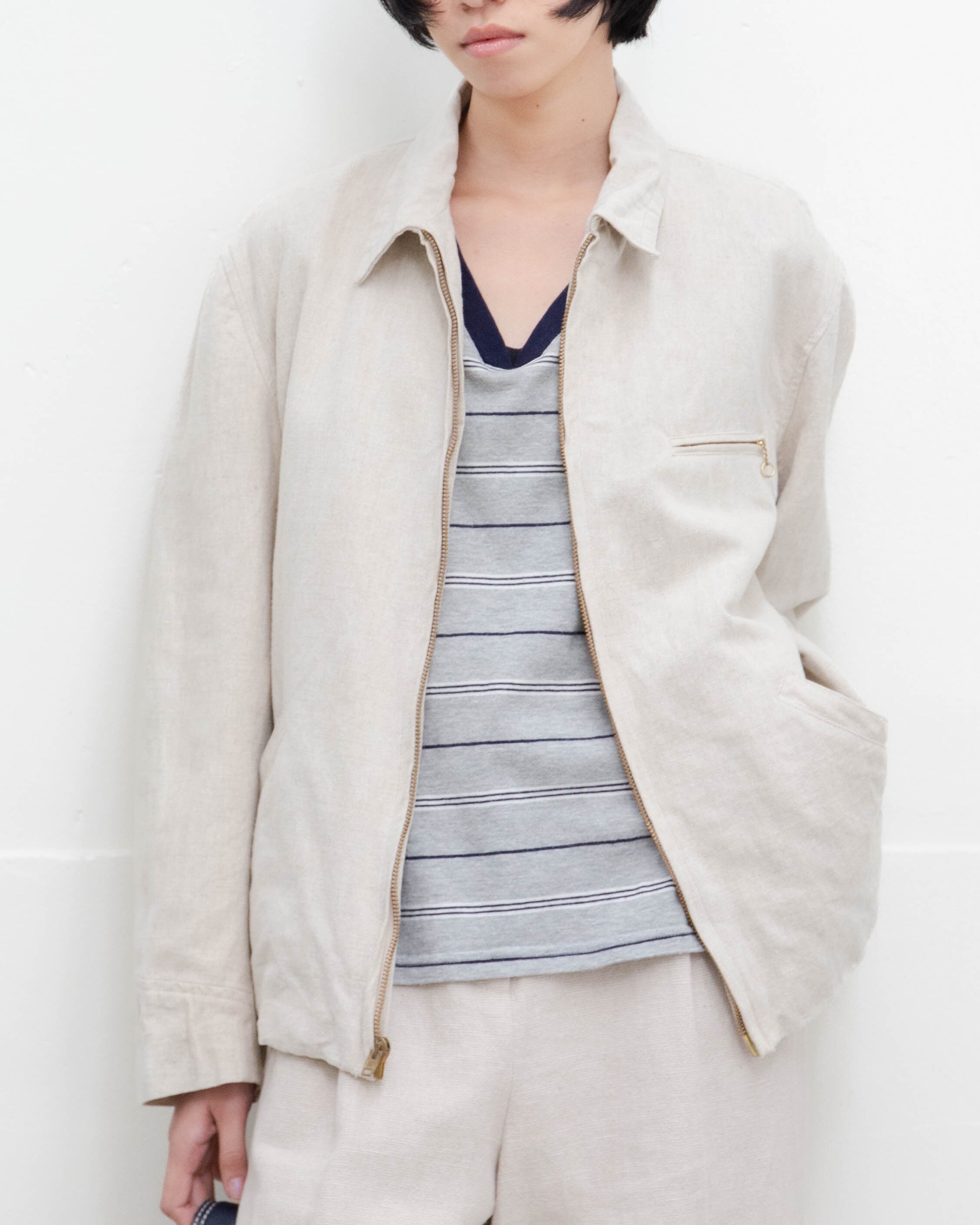 前身頃左襟、後右袖上部にシミがございます。添付写真をご参照ください。