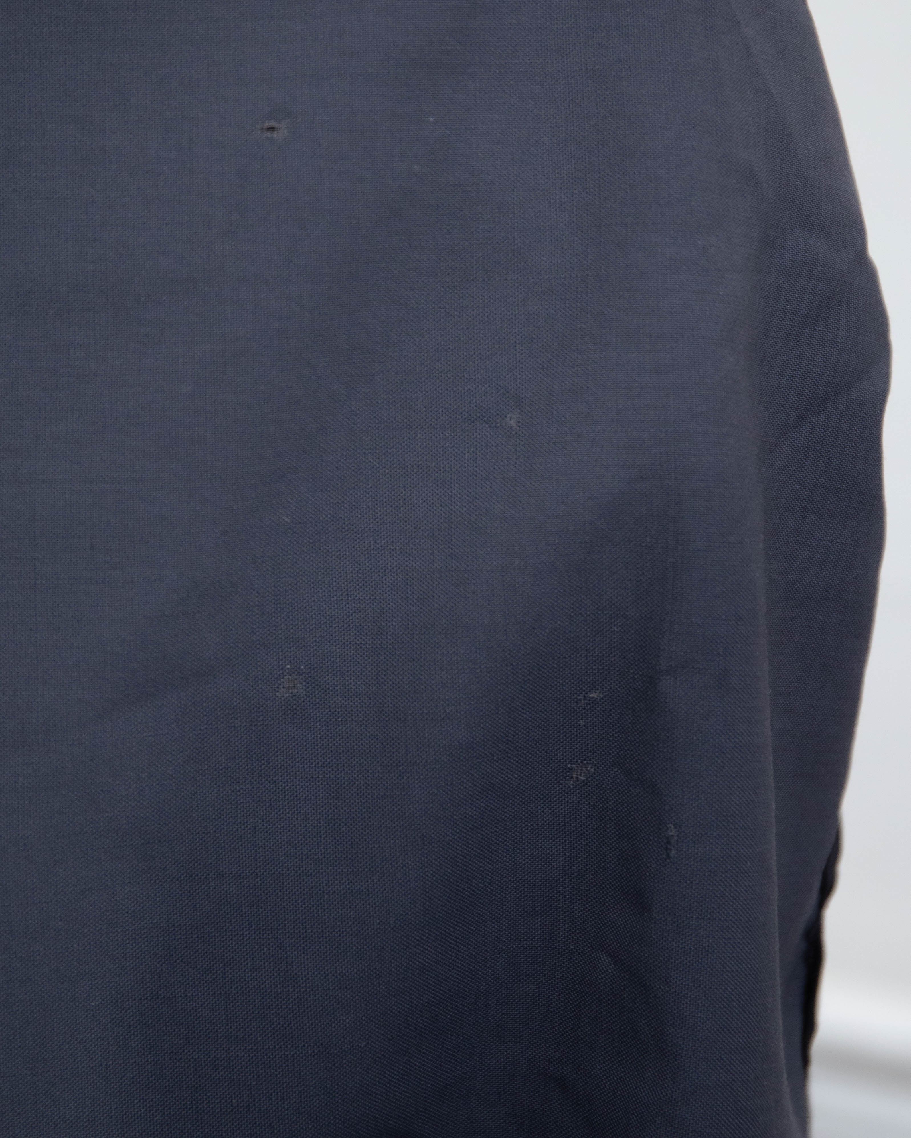 前身頃左膝付近と右足首付近、裾にダメージがございます。添付写真をご参照ください。
