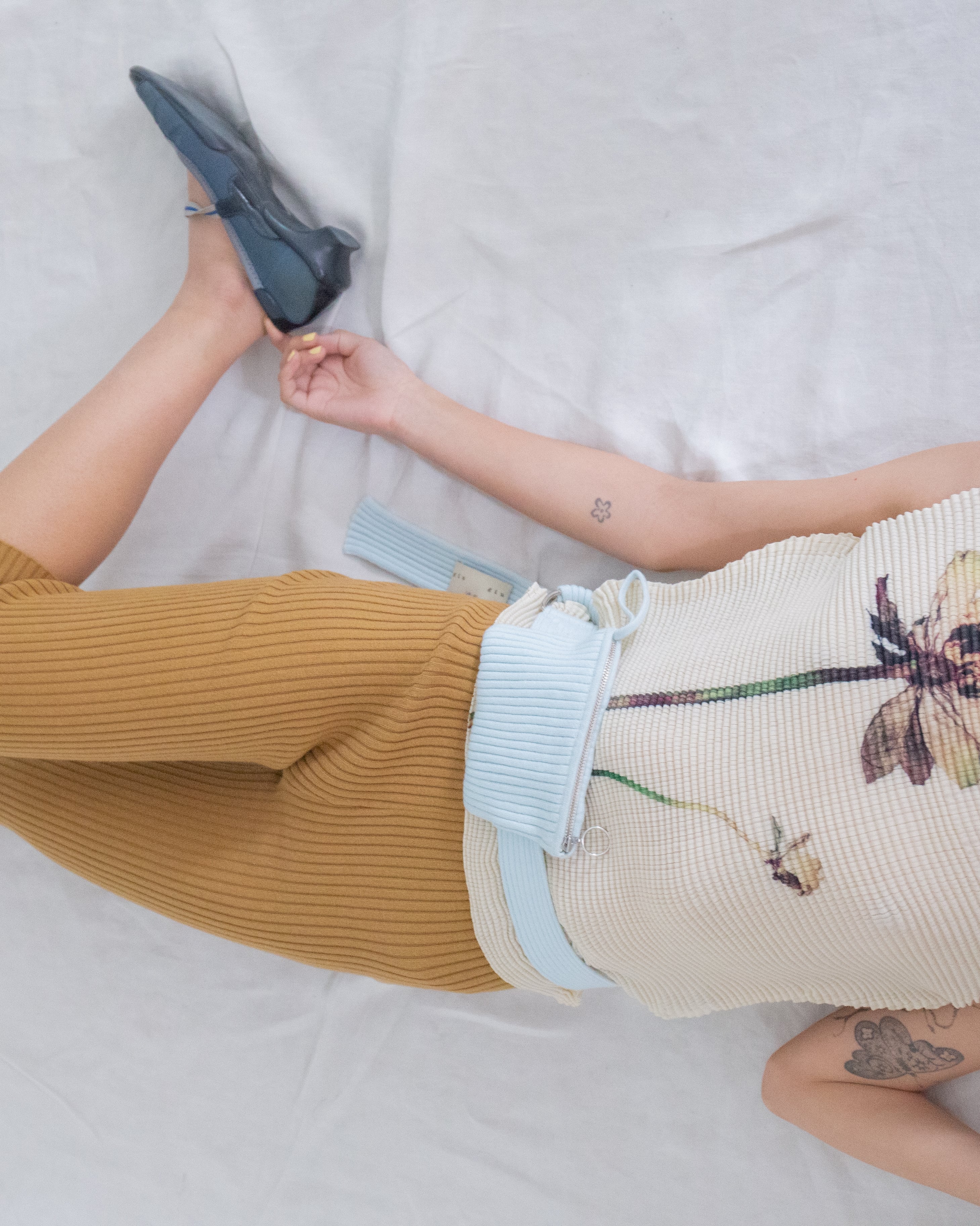 信じられないほど小さく縮んだ外見のニットは伸縮性があり、着用すると体に優しくフィットする