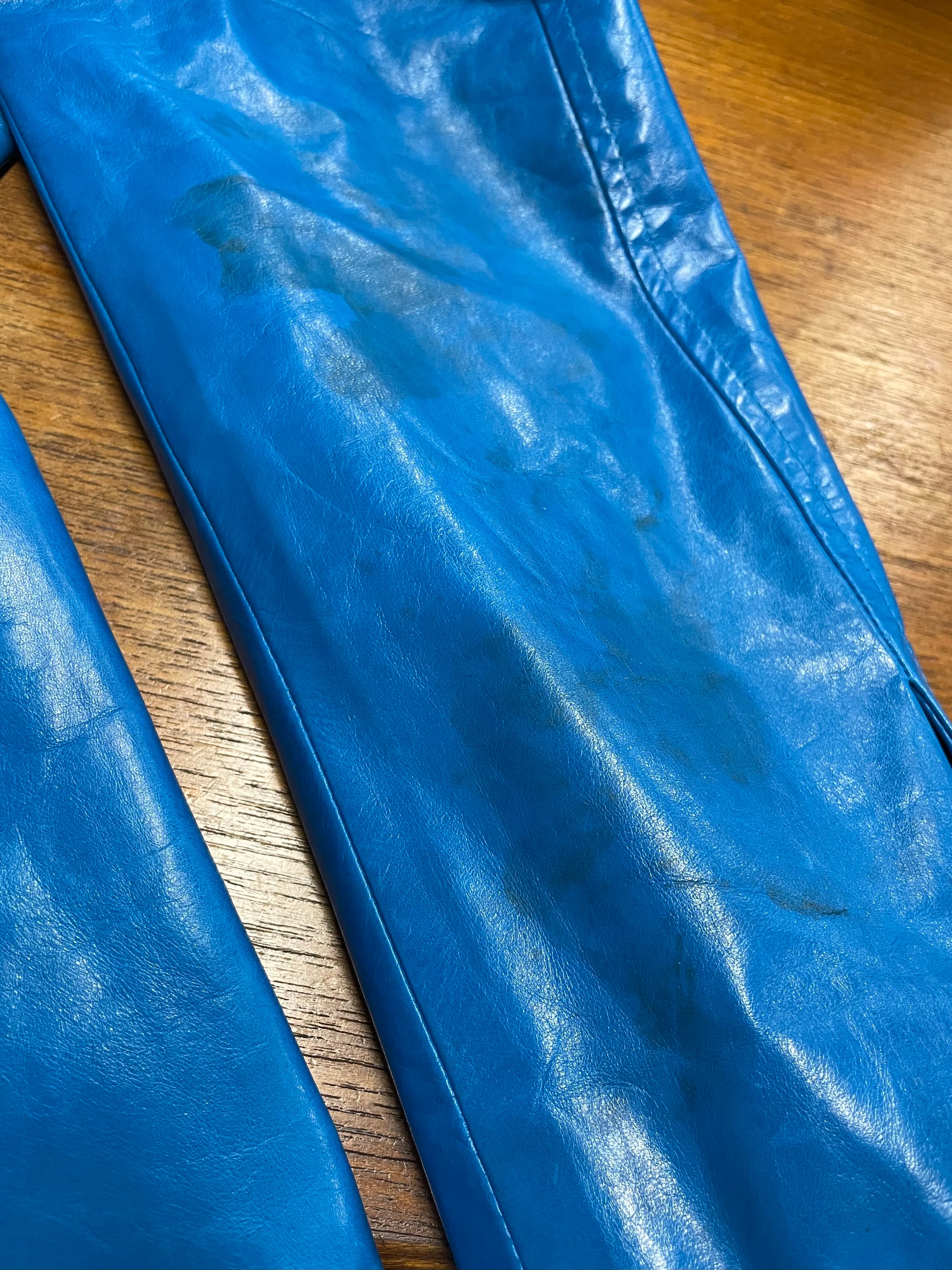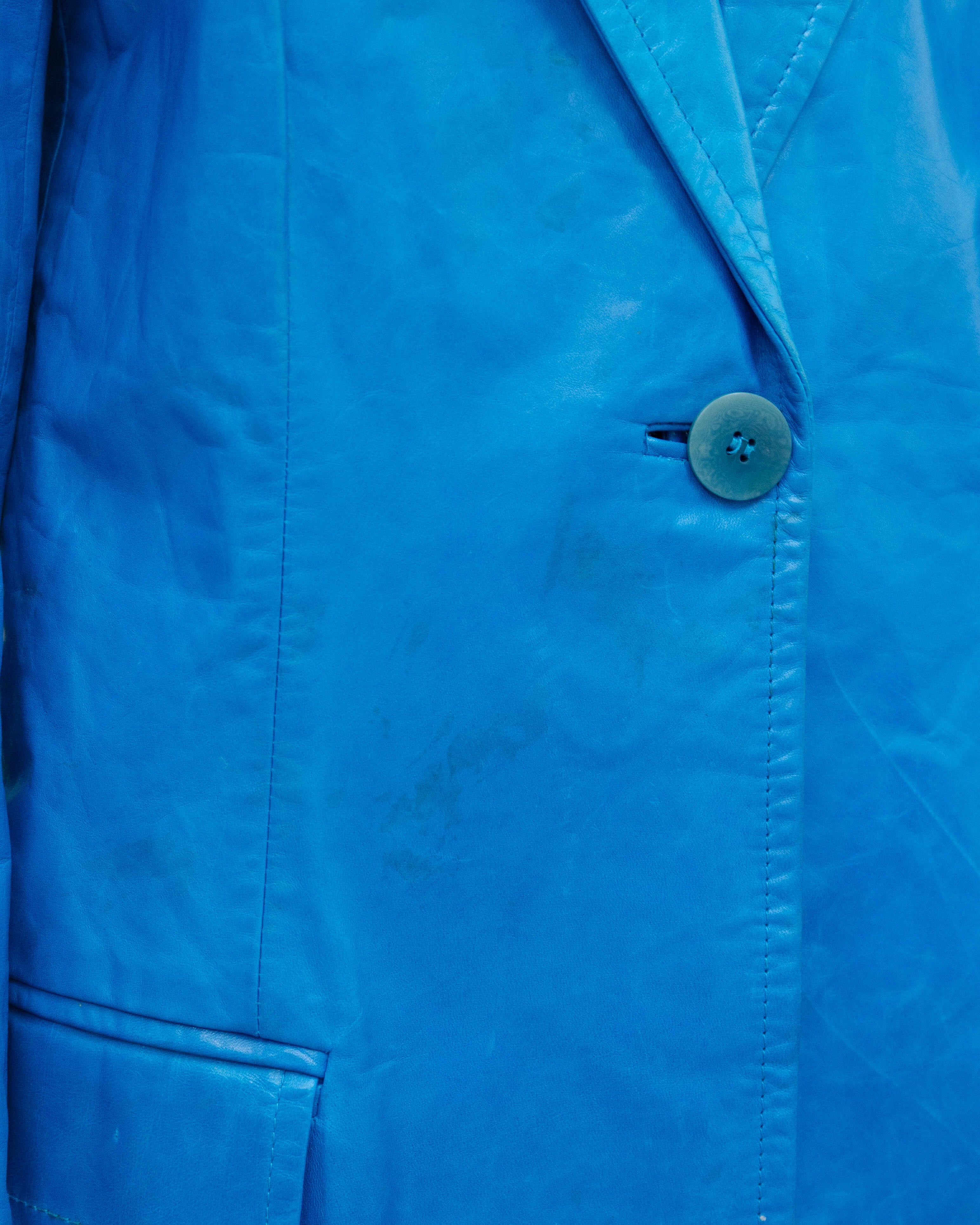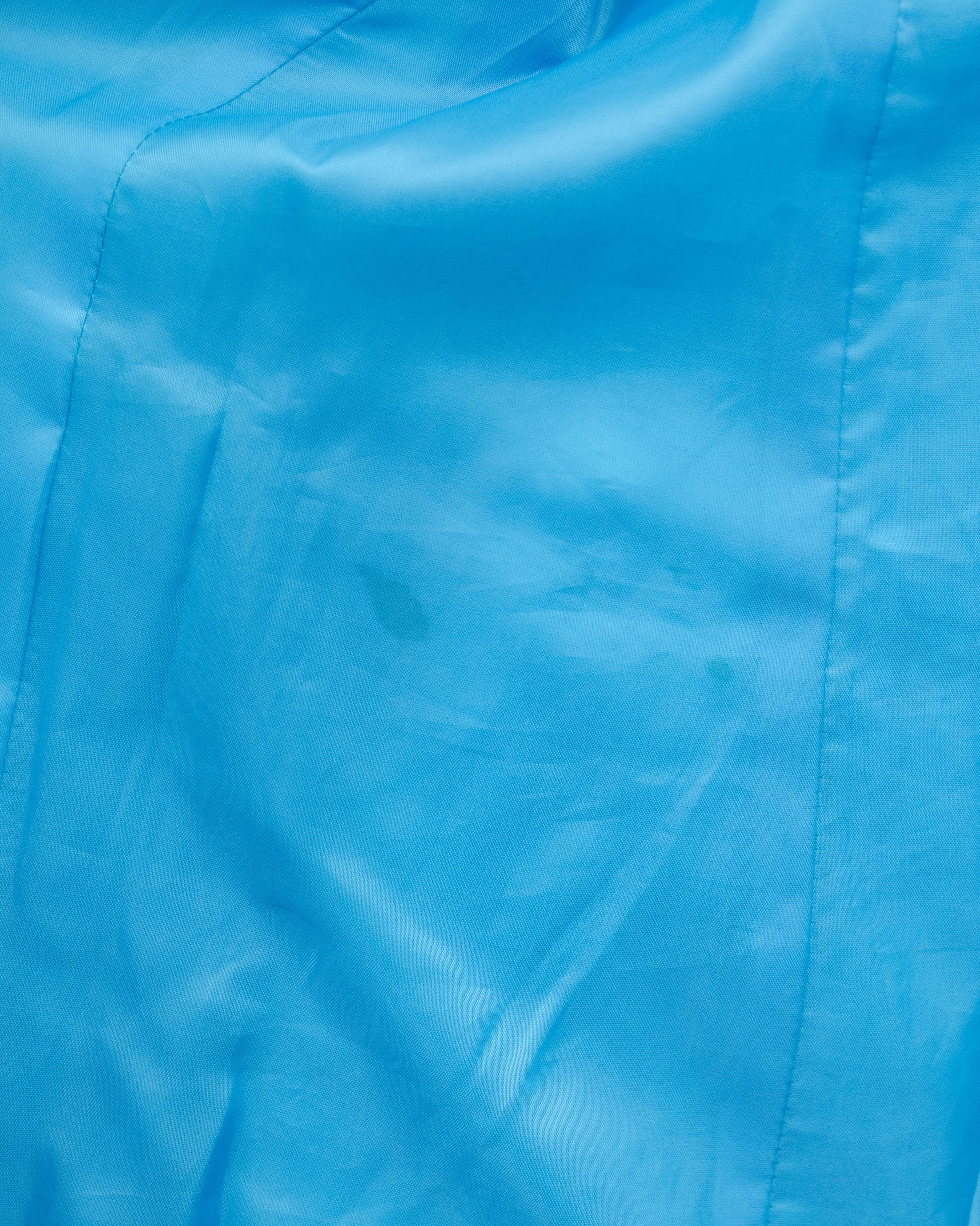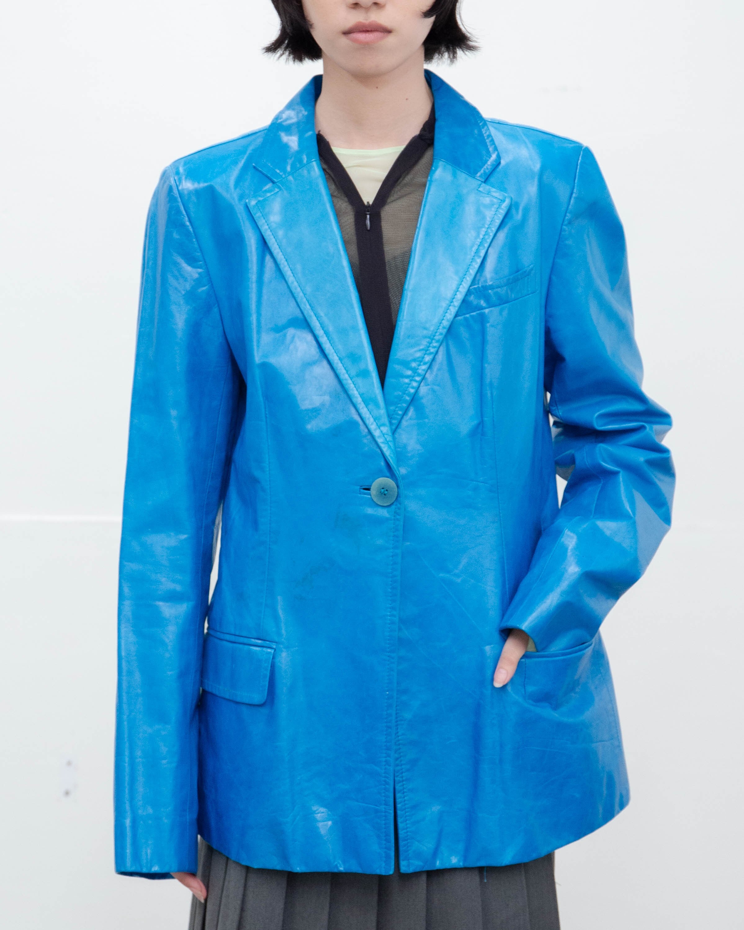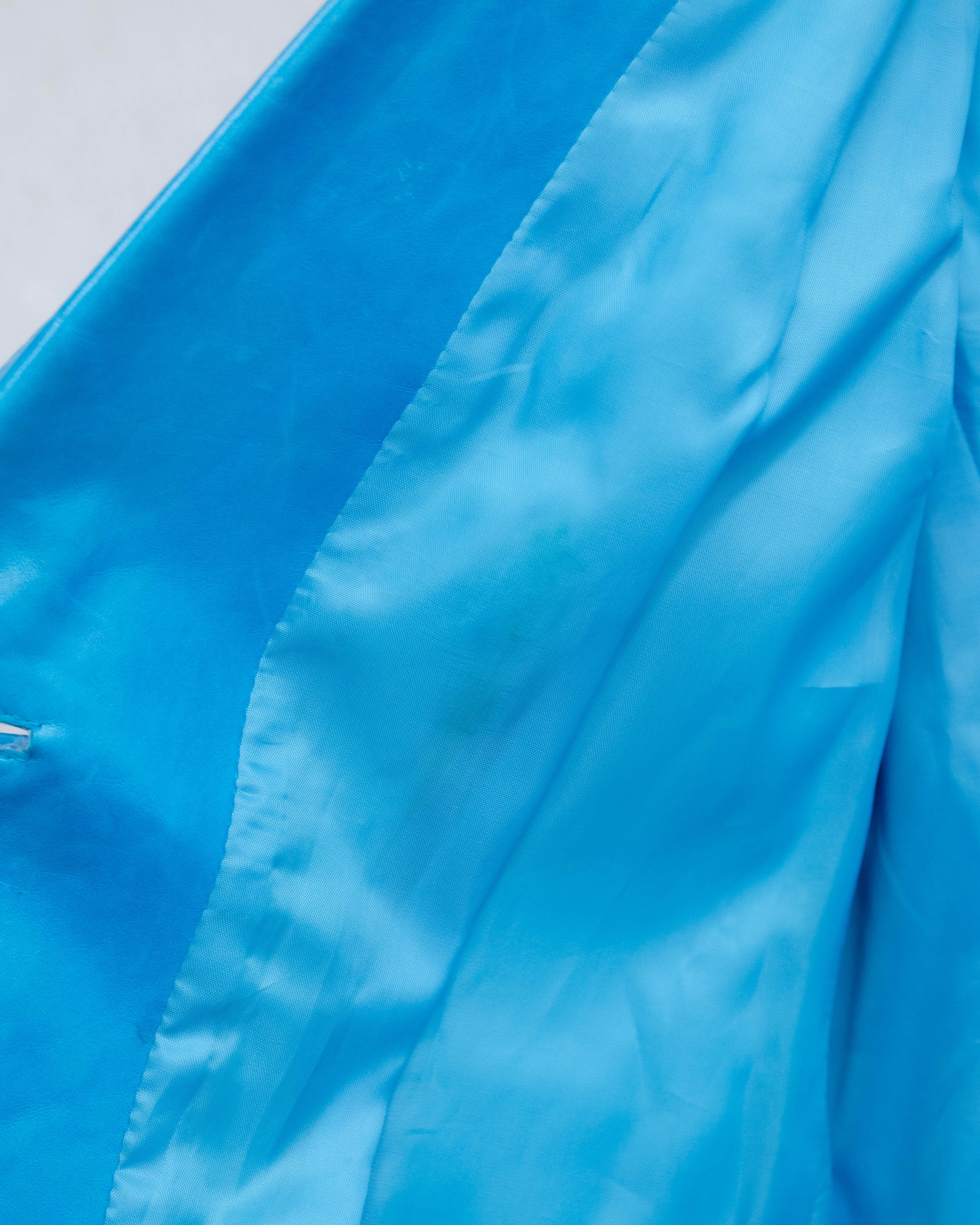 前身頃右腹部と右袖中央部から下部、裏地ボタン付近と下部にシミがございます。添付写真をご参照ください。