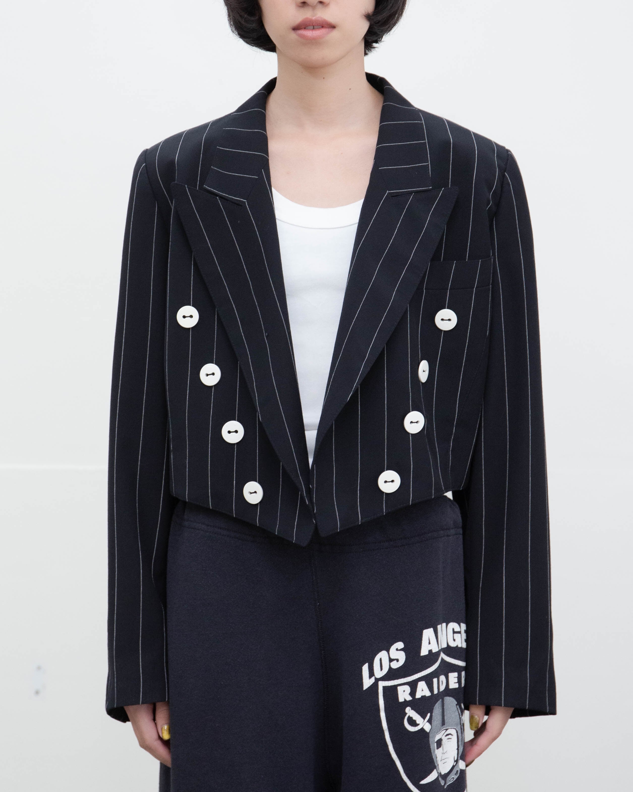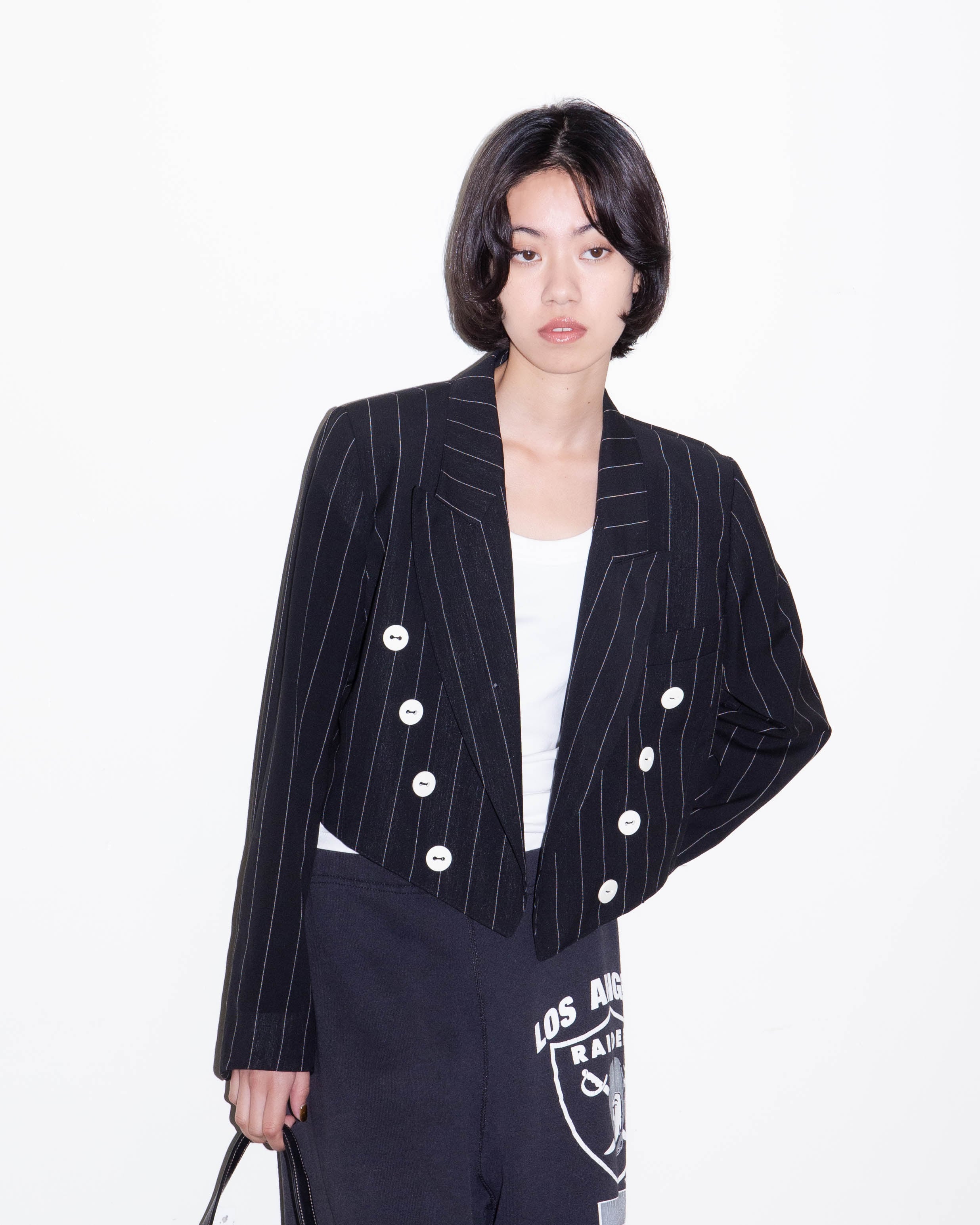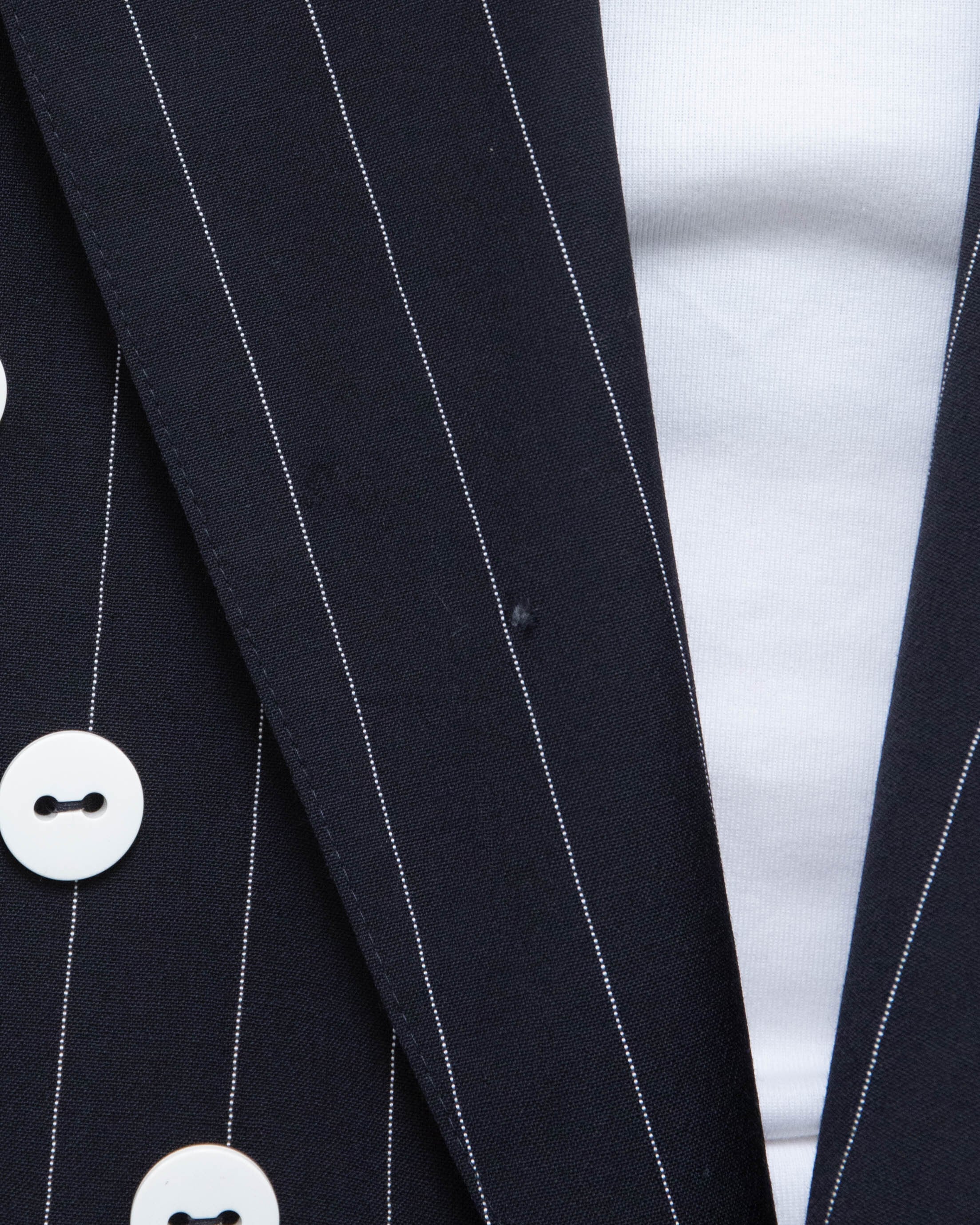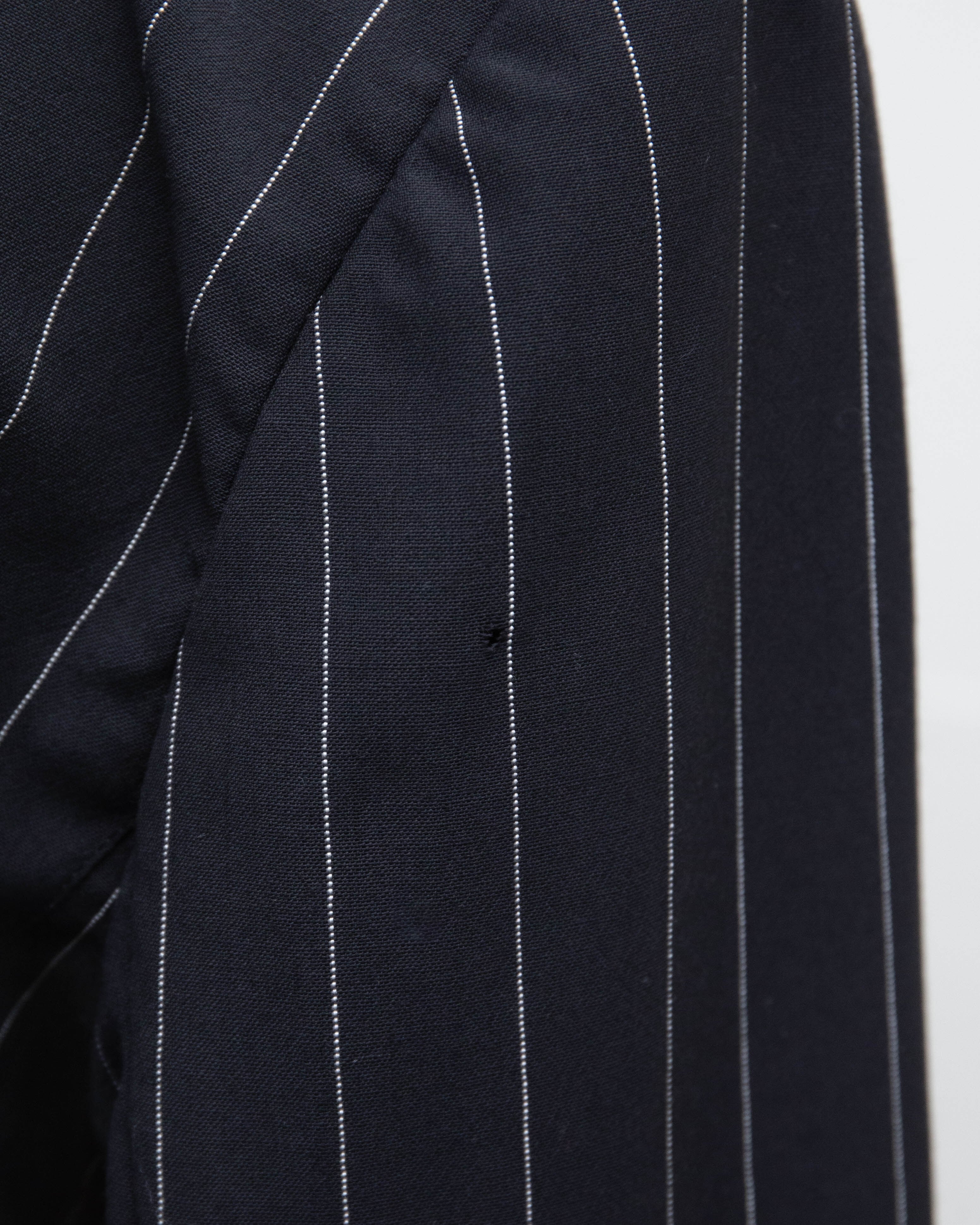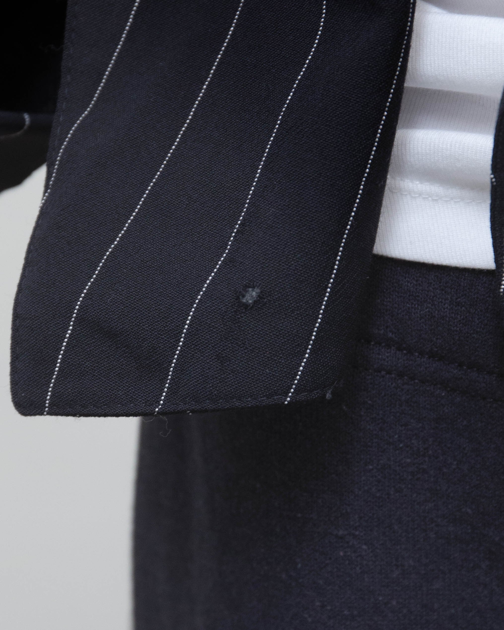 右胸、右襟、1番下ボタン裏、後身頃右肩、右袖上部に小穴、ダメージがございます。添付写真をご参照ください。