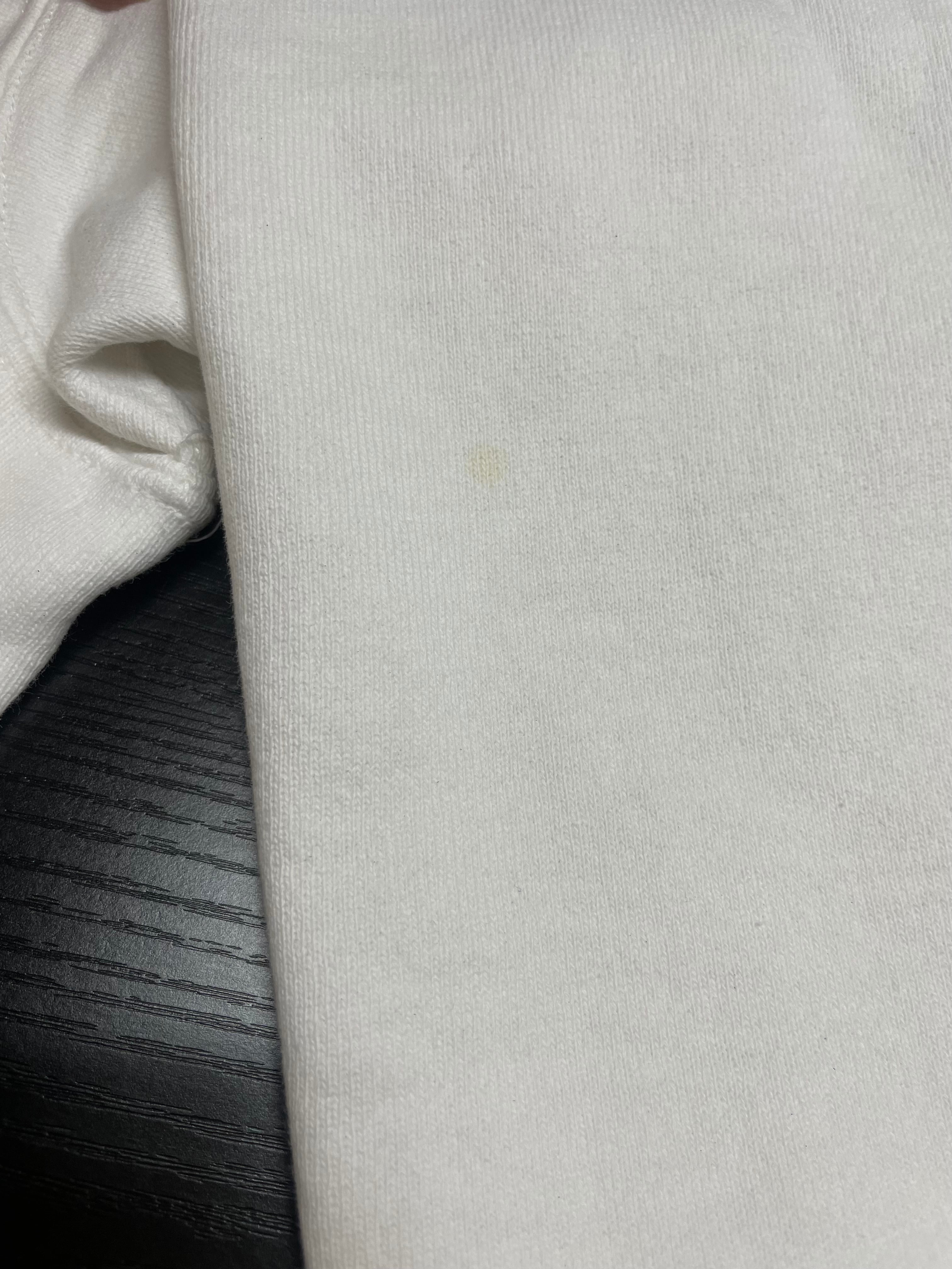 後左脇腹にダメージとシミ、両袖に細かなシミがございます。添付写真をご参照ください。